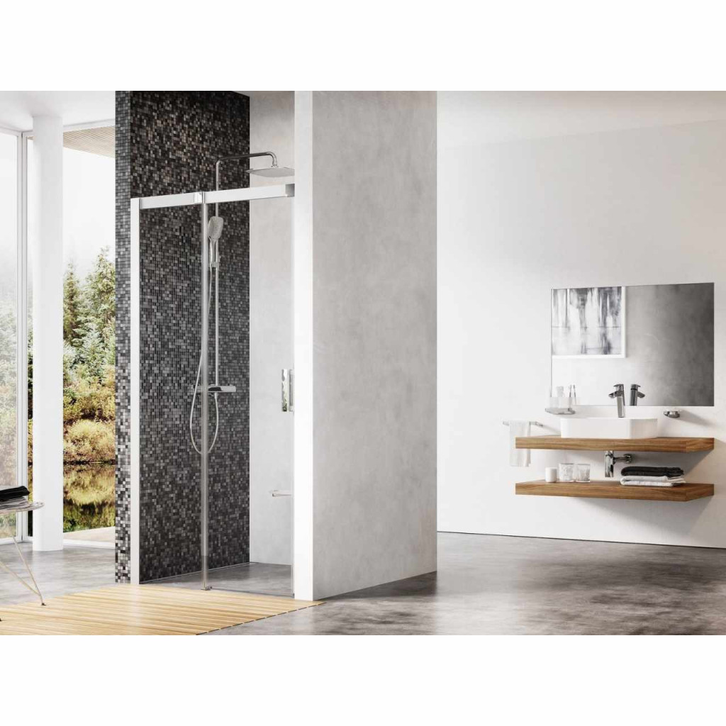 Kétrészes Matrix zuhanyajtó matt króm kivitelben, tiszta üvegbetéttel, Ravak AntiCalc® védőréteggel. Toló nyitórendszer. Bal oldali változat.