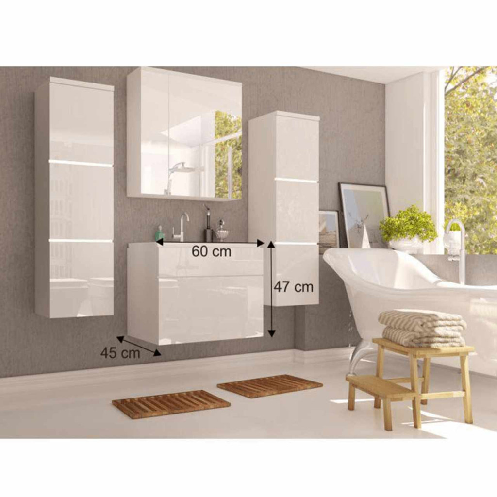 Mosdó alatti szekrény, fehér/fehér extra magas HG fény, MASON WH13