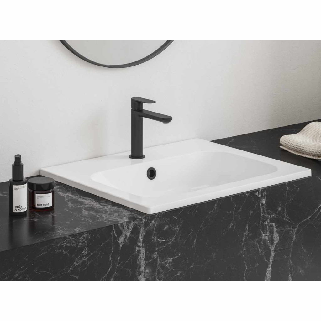A fekete mosdó túlfolyó fedél a króm fedél cseréjére szolgál, amely a Ravak öntött mosdó túlfolyójának része.