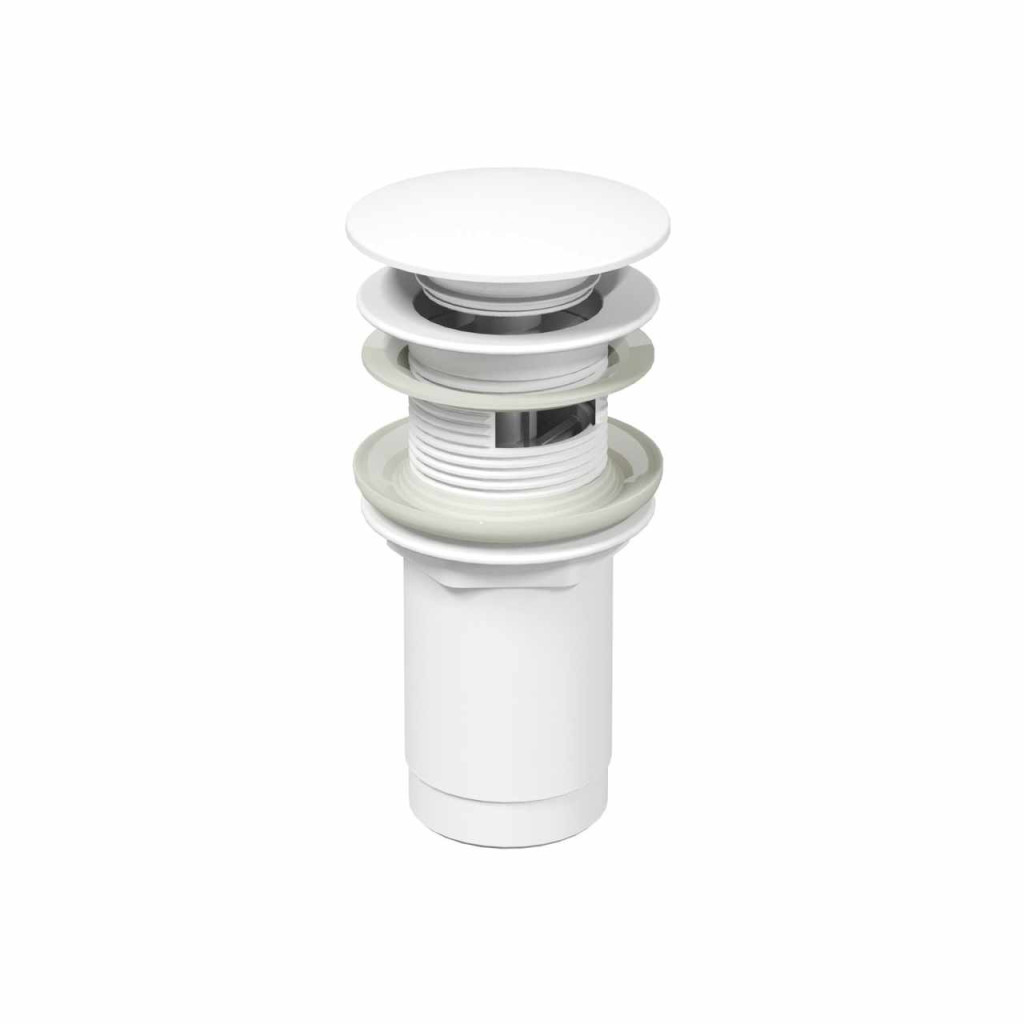 Mosdó lefolyó Click-Clack fehér matt kivitelben. Alkalmas túlfolyós mosdókhoz.