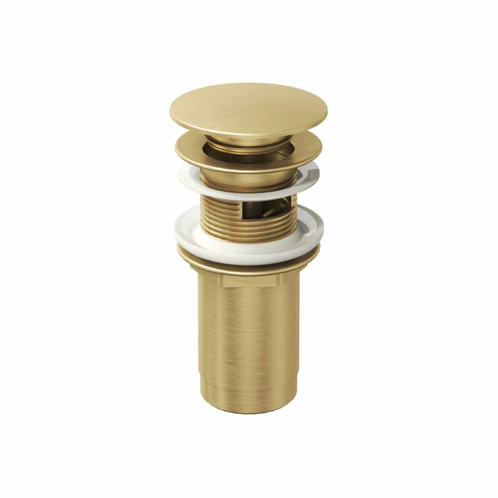 Univerzális mosdó lefolyó 2 az 1-ben rendszerrel: Click-Clack vagy fix szereléssel a túlfolyóval rendelkező és túlfolyó nélküli mosdókhoz is alkalmazható, gold felülettel.