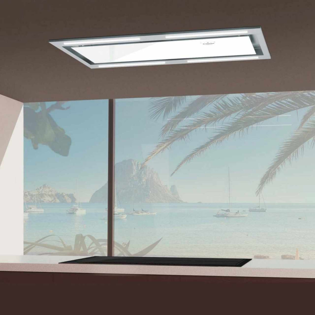 A NorBreeze ISLA DEIMOS 1000 RF Hob to Hood páraelszívó a mennyezetbe építhető kialakításával nem csupán egy háztartási készülék, hanem a konyha központi eleme. A fehér üveg borítás letisztult, elegáns megjelenést biztosít, amely bármilyen enteriőrben harmonikusan illeszkedik. Az üvegfelület nemcsak esztétikus, hanem rendkívül könnyen tisztítható, így a készülék hosszú távon is megőrzi kifinomult szépségét és higiénikus állapotát, minimális ráfordítással.