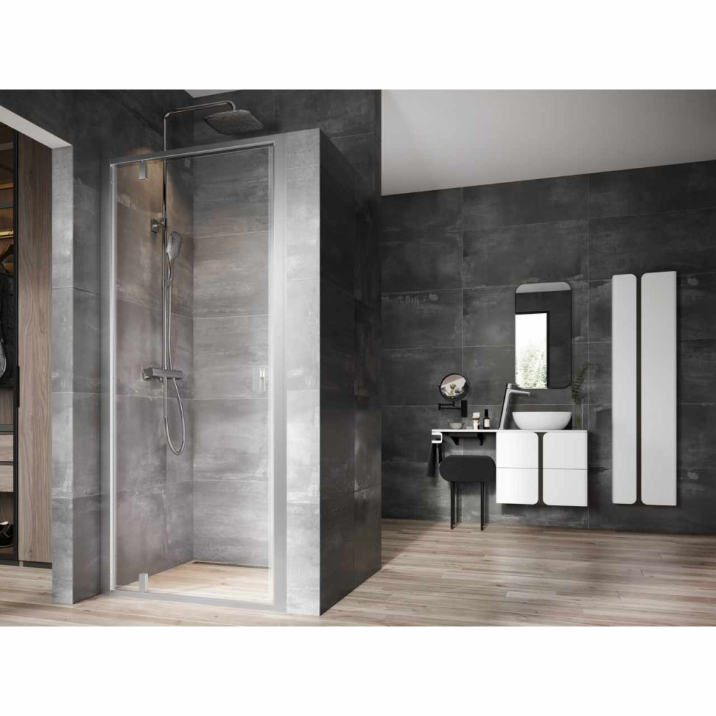 Egyrészes Nexty zuhanyajtó Szatén kerettel, fogantyúval és zsanérral. A betétlemez Ravak AntiCalc® vízlepergető réteggel ellátott, átlátszó biztonsági üvegből készült. Pivot forgózsanéros nyílórendszer. Forgatható termék, bal és jobb oldali kivitel kialakításához.