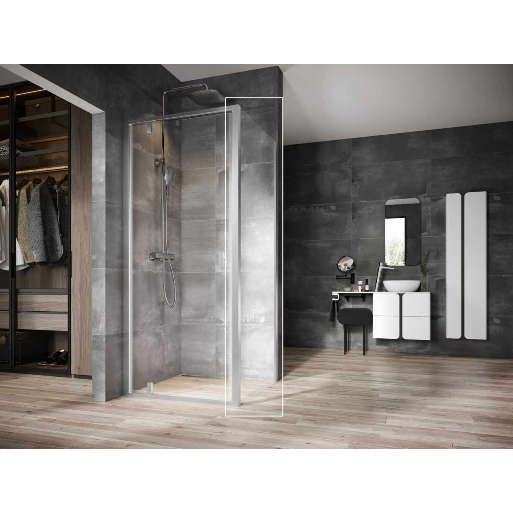 Nexty fix fal szatén színben. Átlátszó, edzett biztonsági üvegből készült, Ravak AntiCalc® vízlepergető réteggel ellátva. Forgatható termék bal és jobb oldali kivitel kialakításához.