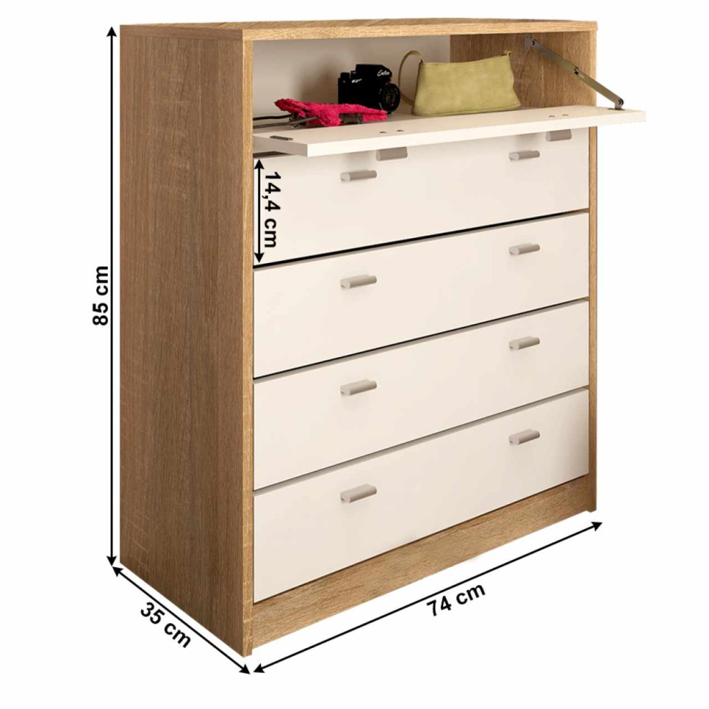 Anyag: laminált DTDSzínváltozat: tölgy sonoma/fehérMéretek (SzéxMéxMa): 74x35x85 cmAnyagvastagság: 16 mmAjtó magassága: 14,4 cmÖt billenő rakodótérMinőségi szlovák termékLapraszerelten szállítva