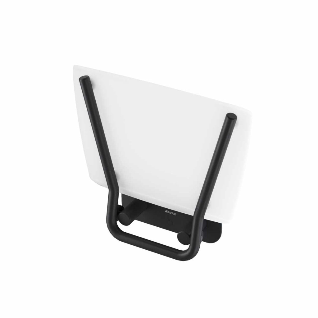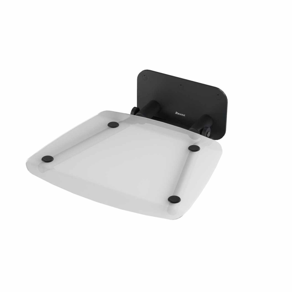 Ovo B II. összecsukható zuhanyülőke. Fekete kivitelű szerkezet átlátszó Clear üléssel. Négyszögletes forma.
