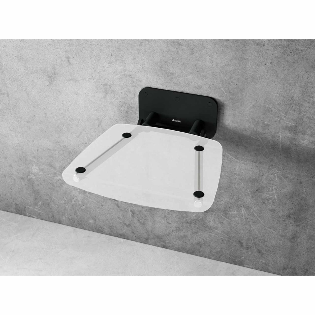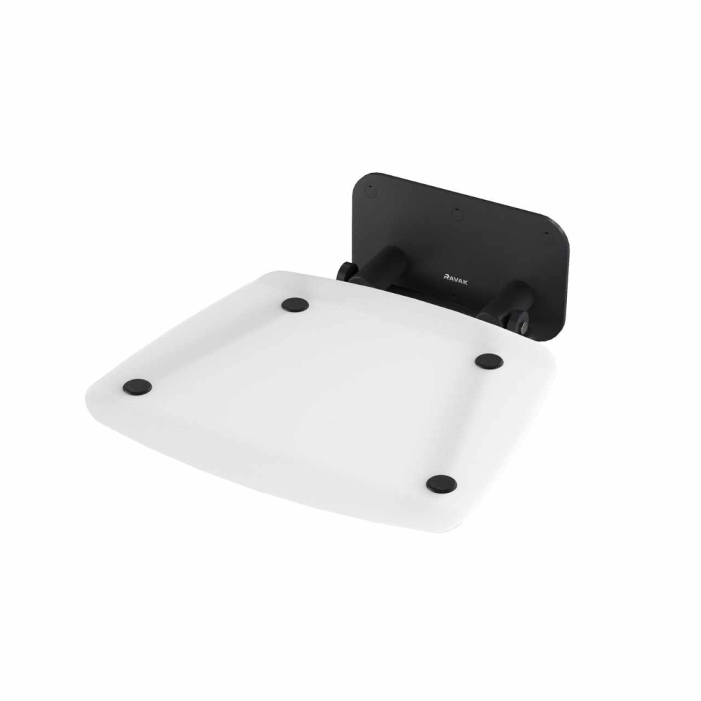 Ovo B II zuhanyülőke, melynek szerkezete fekete, ülőfelülete átlátszóan fehér Opal. Négyszögletes forma.