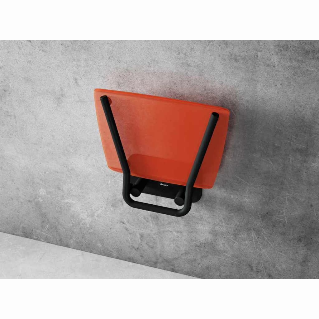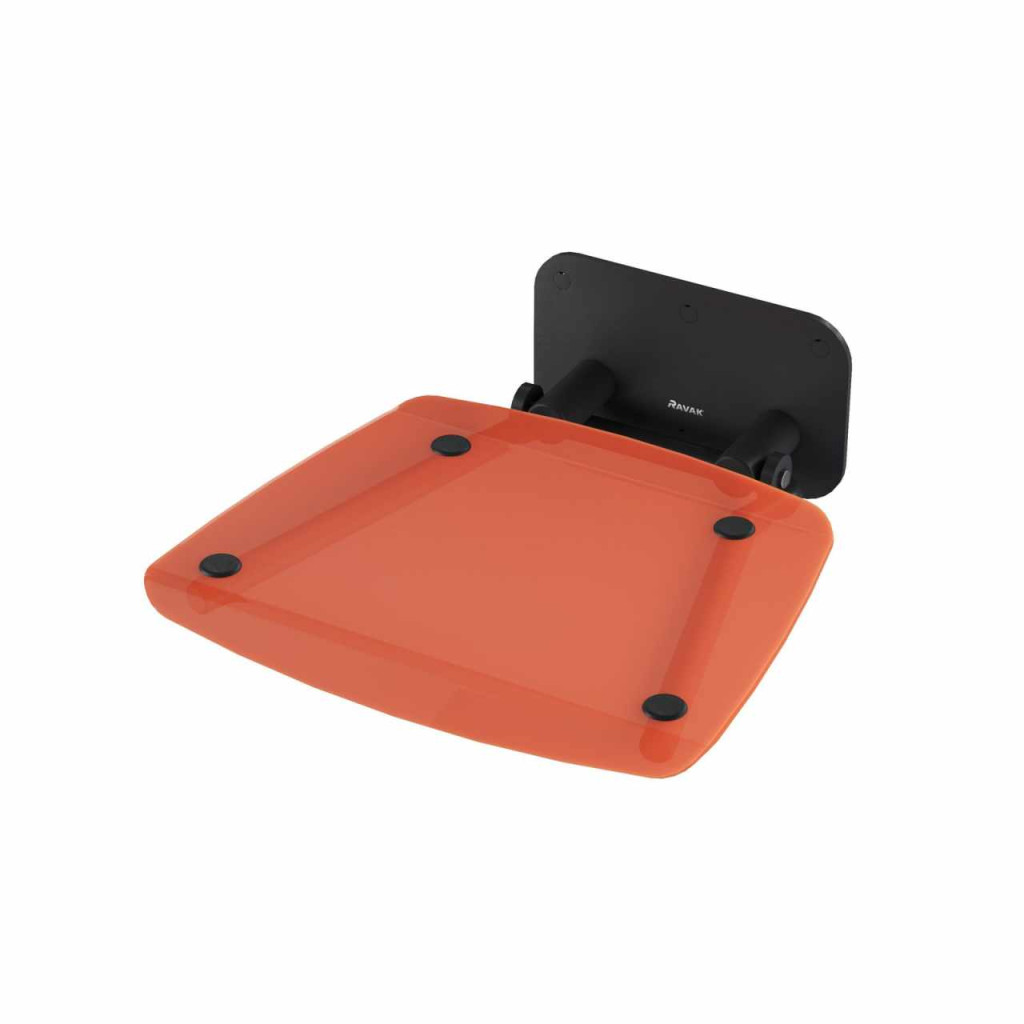 Összecsukható Ovo B II zuhanyülőke. Fekete kivitelben, áttetsző narancssárga ülőkével, Orange. Négyszögletes forma.