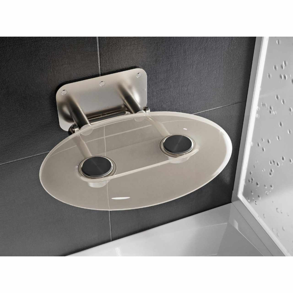 Ovo P II. összecsukható zuhanyülés rozsdamentes acél szerkezet áttetsző Clear üléssel. Ovális alakzat.
