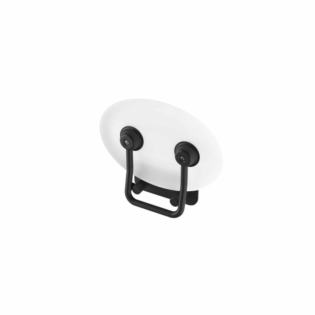 Ovo P II összecsukható zuhanyülőke. Fekete kivitelű szerkezet áttetsző fehér Opal ülőkével. Ovális forma.