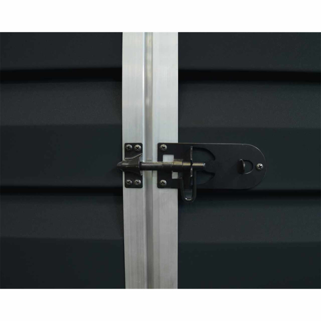 Tároló méretei (H x Sz x M) (cm):153,5 x 185,3 x 217Belső méretek (cm):148 x 170,5 x 208Tárolási kapacitás (m3):5Ajtó mérete (M x Sz) (cm):171 x 127,5Oldalfal magassága (cm):173Vázszerkezet anyaga: robusztus allumínium profilok / rozsdásodás-mentesVázszerkezet színe:ezüstFalak színe :antracitTető színe: sötétszürkeLemezek anyaga (oldalfal): polikarbonát 100% UV védelemmelLemezek anyaga (tető): polikarbonát 100% UV védelemmelPadlózat:csúszásmentes, csomagolás részeSzellőző ablak:2Ajtó zár :igen, zárható