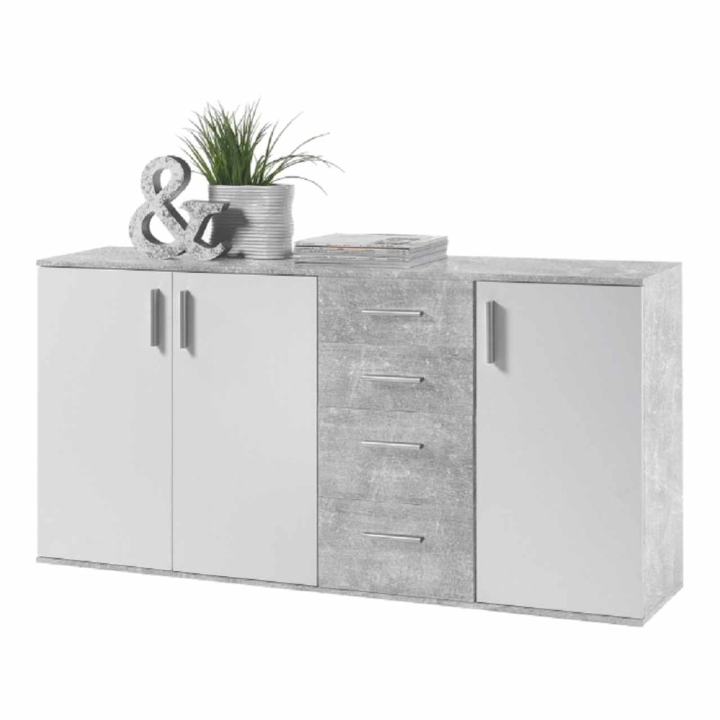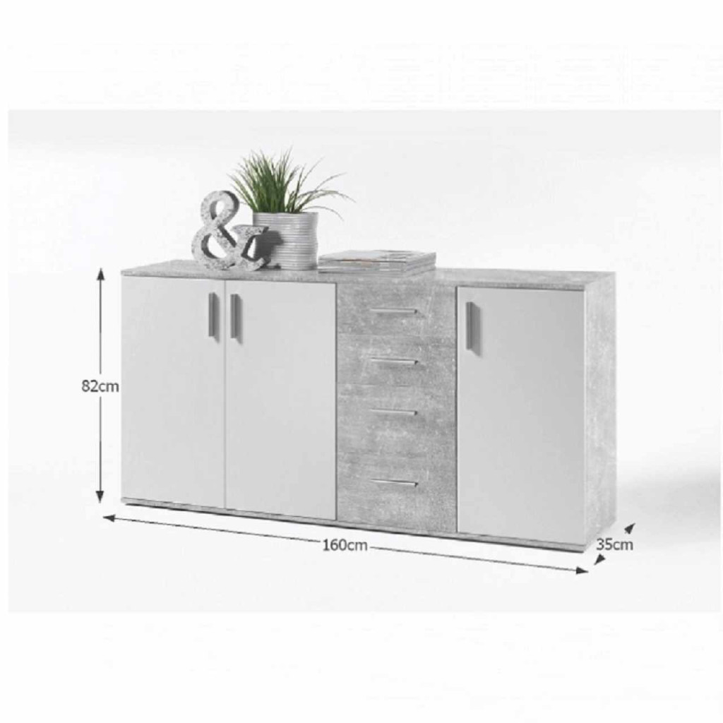 Komód POPPY 3 Anyaga: laminált DTD Színe: fehér/beton Méretek (SzéxMéxMa): 160x35x82 cm Anyag vastagsága: 1,5 cmLapraszerelten szállítva