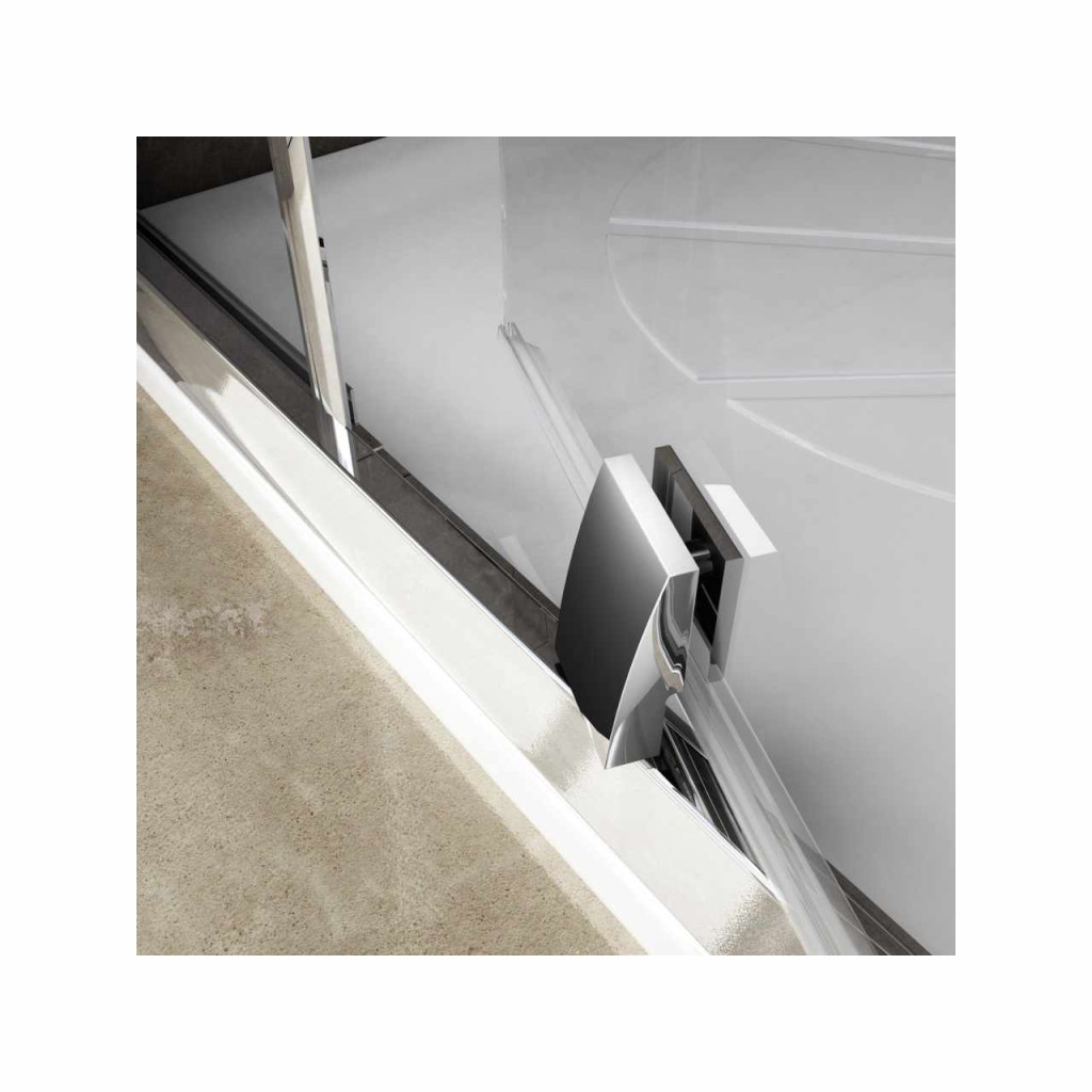 Egyrészes Pivot zuhanyajtó fehér kerettel, krómozott fogantyúkkal és zsanérokkal. A betétlemez Ravak AntiCalc® vízlepergető réteggel ellátott, átlátszó biztonsági üvegből készült. Pivot forgózsanéros nyílórendszer. Forgatható termék, bal és jobb oldali kivitel kialakításához.