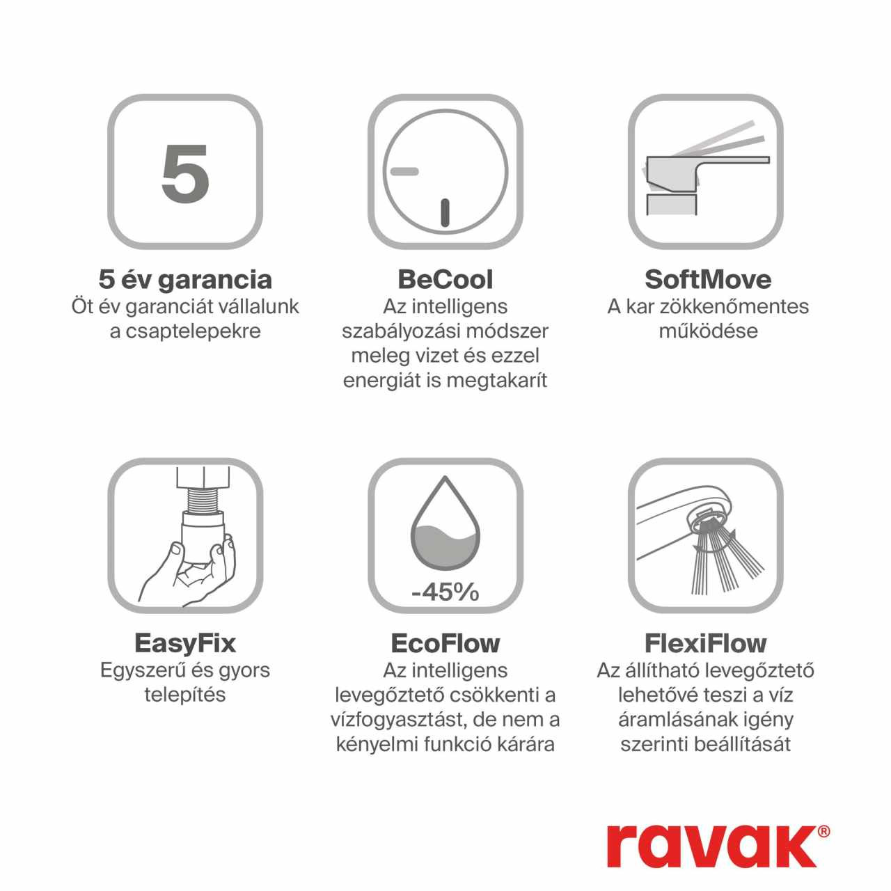 A fürdőszoba egységes megoldása és harmonikus kialakítása érdekében a többi Plan csapteleppel kombinálva javasoljuk. Külső tisztításhoz a Ravak Cleaner Chrome tisztítószer használatát ajánljuk.