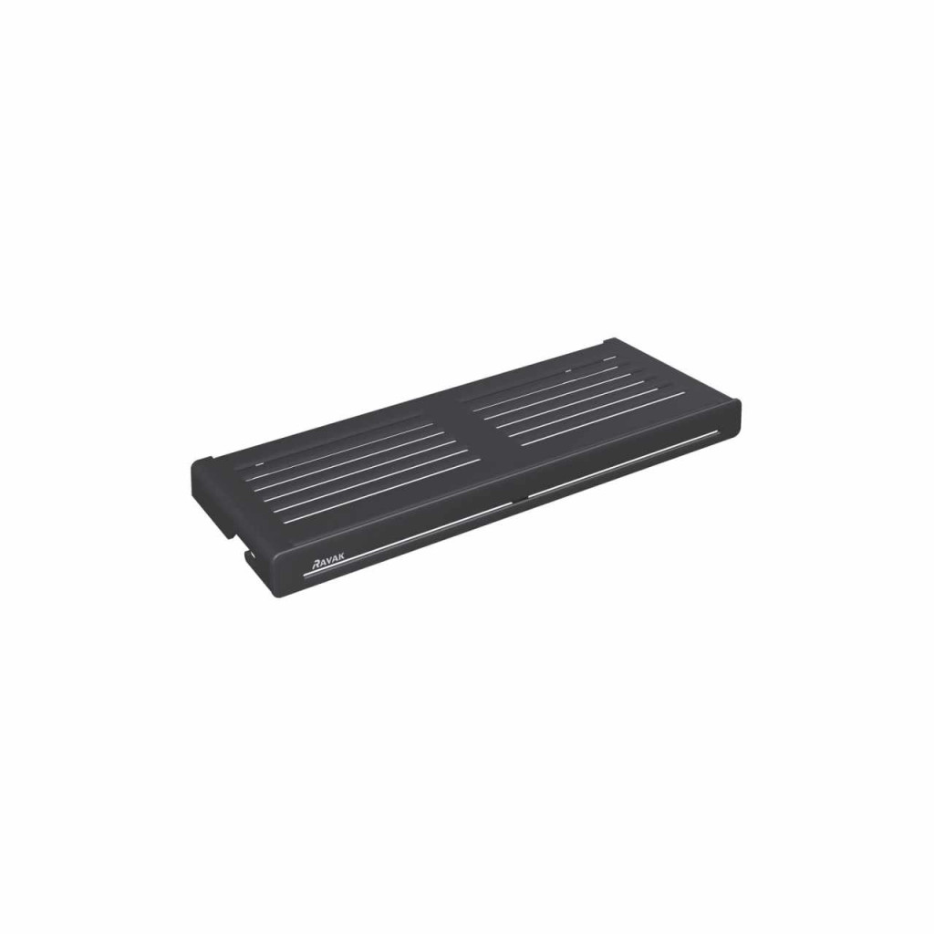 A polc sík felülete úgy van perforálva, hogy a víz ne maradjon a felületen, mégis stabilitást biztosít a rajta elhelyezett tárgyaknak. A polc oldalán praktikus akasztók találhatók szivacs felakasztásához. A polc közepén van egy alsó akasztó, amely még a nehezebb tárgyakat, például a hajszárítót is megtartja. Két vagy több polc kombinációjával hatásos összeállítást érhet el extra tárolófelülettel. Javasoljuk a Slim C sarokpolccal kombinálni.