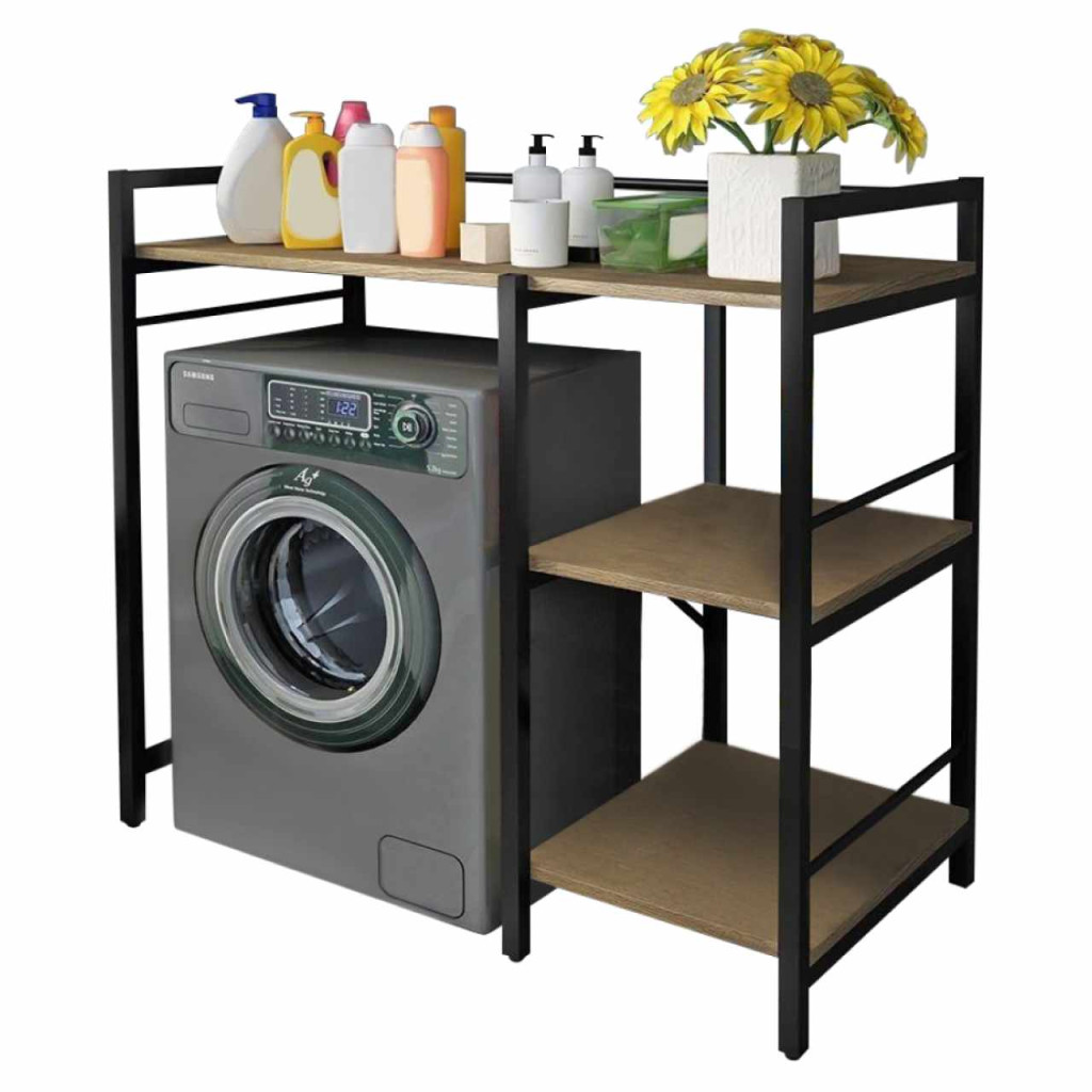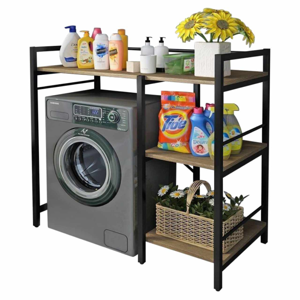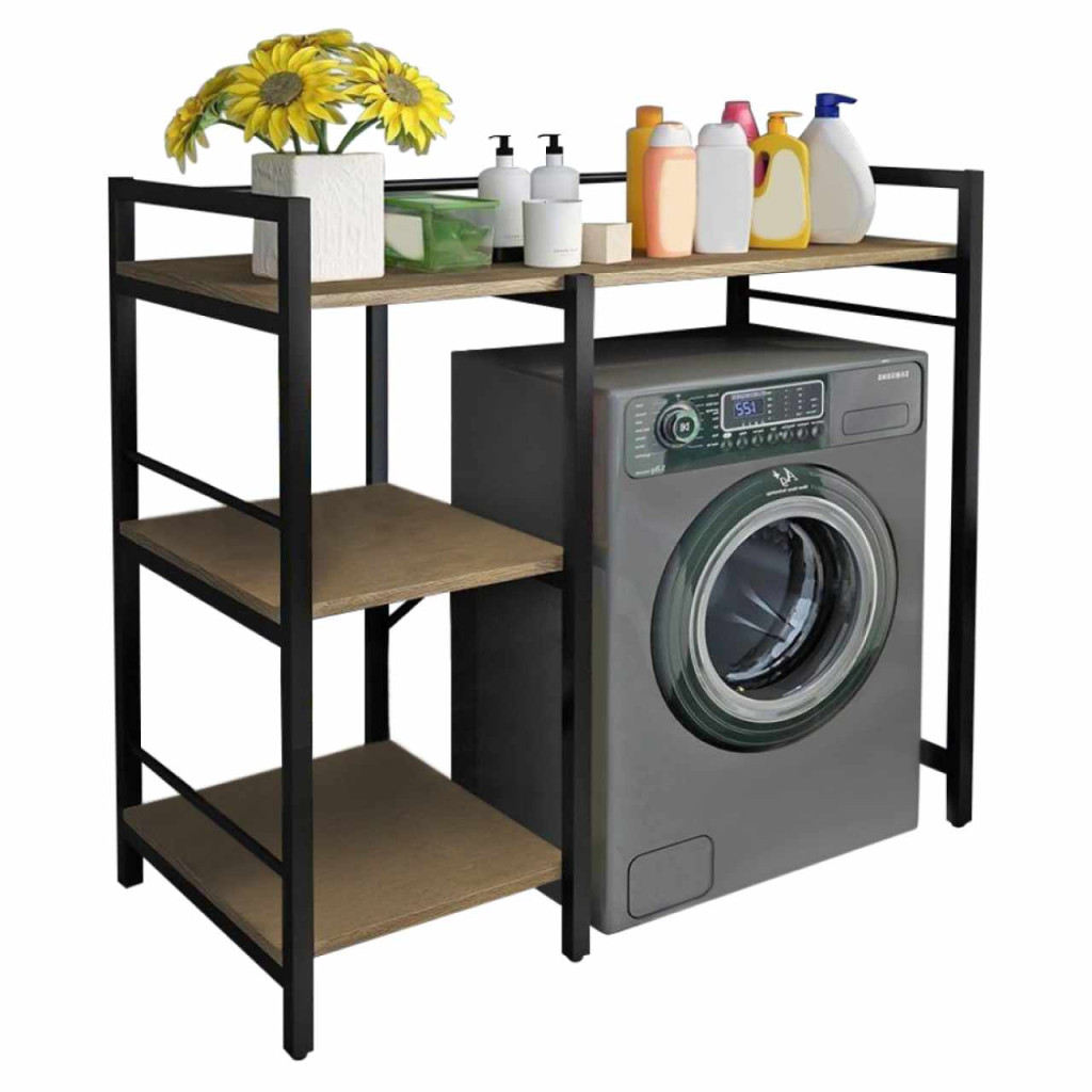Polcállvány mosógép fölé, tölgy/fekete, BARNET , Barna , Fém