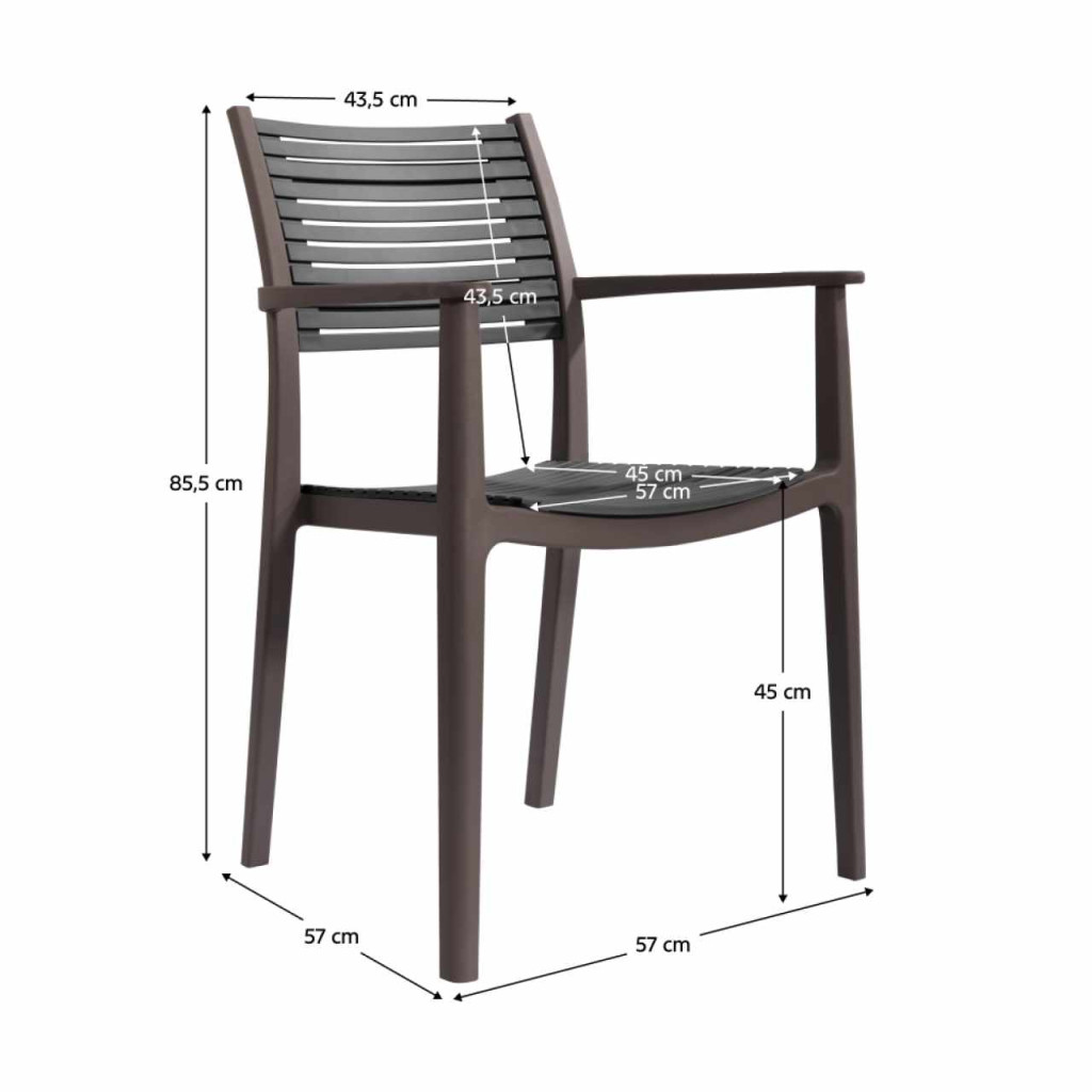 Anyag: műanyagSzín: barna/szürkeMéretek (SzxMéxMa): 58x56,5x85,5 cmÜlés magassága: 45 cmÜlés mélysége: 45 cmÜlés szélessége: 57 cmHáttámla magassága: 44,5 cmHáttámla szélessége: 43,5 cmTeherbírás: 100 kgSúly: 6,9 kgRakásolhatóAlkalmas kül- és beltéri használatraEgészben szállítva