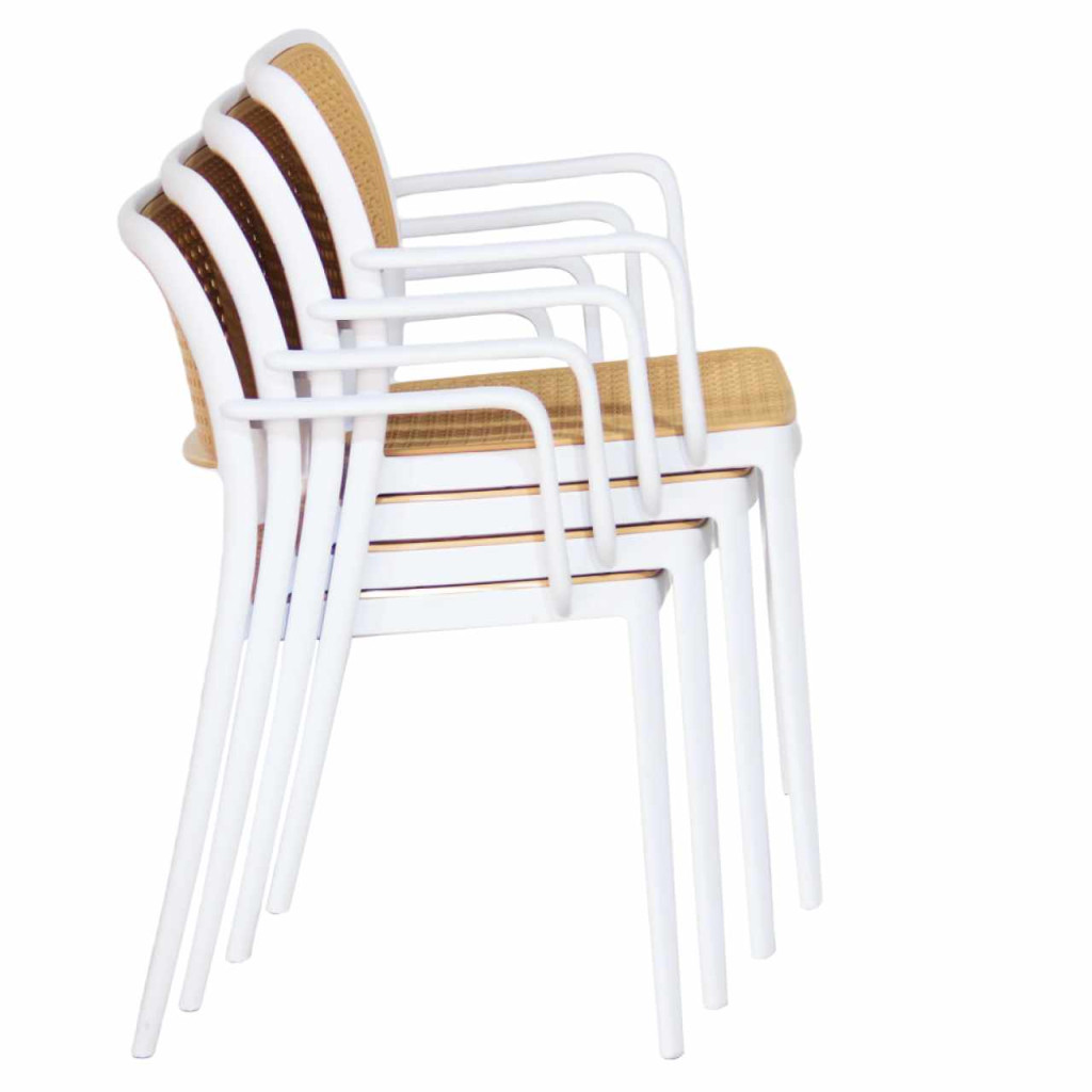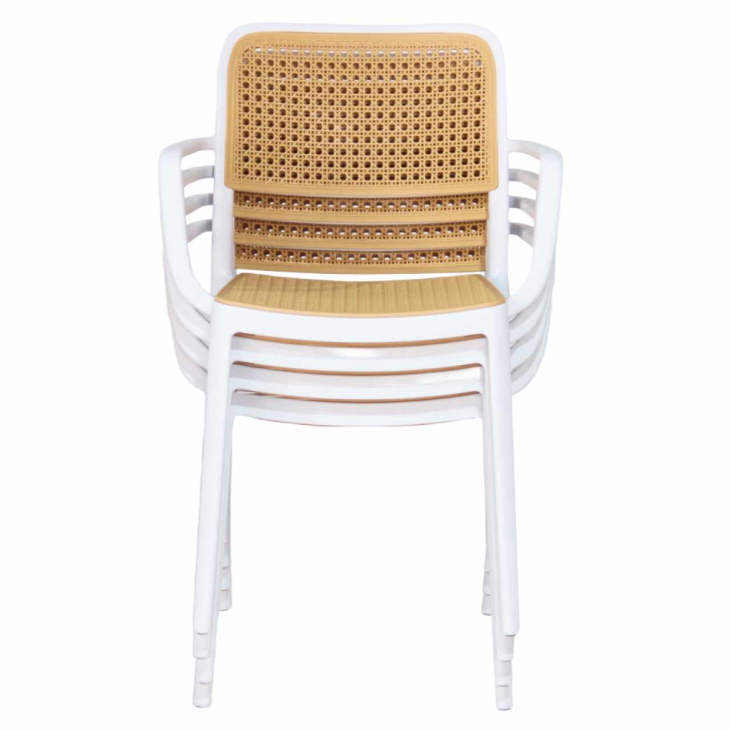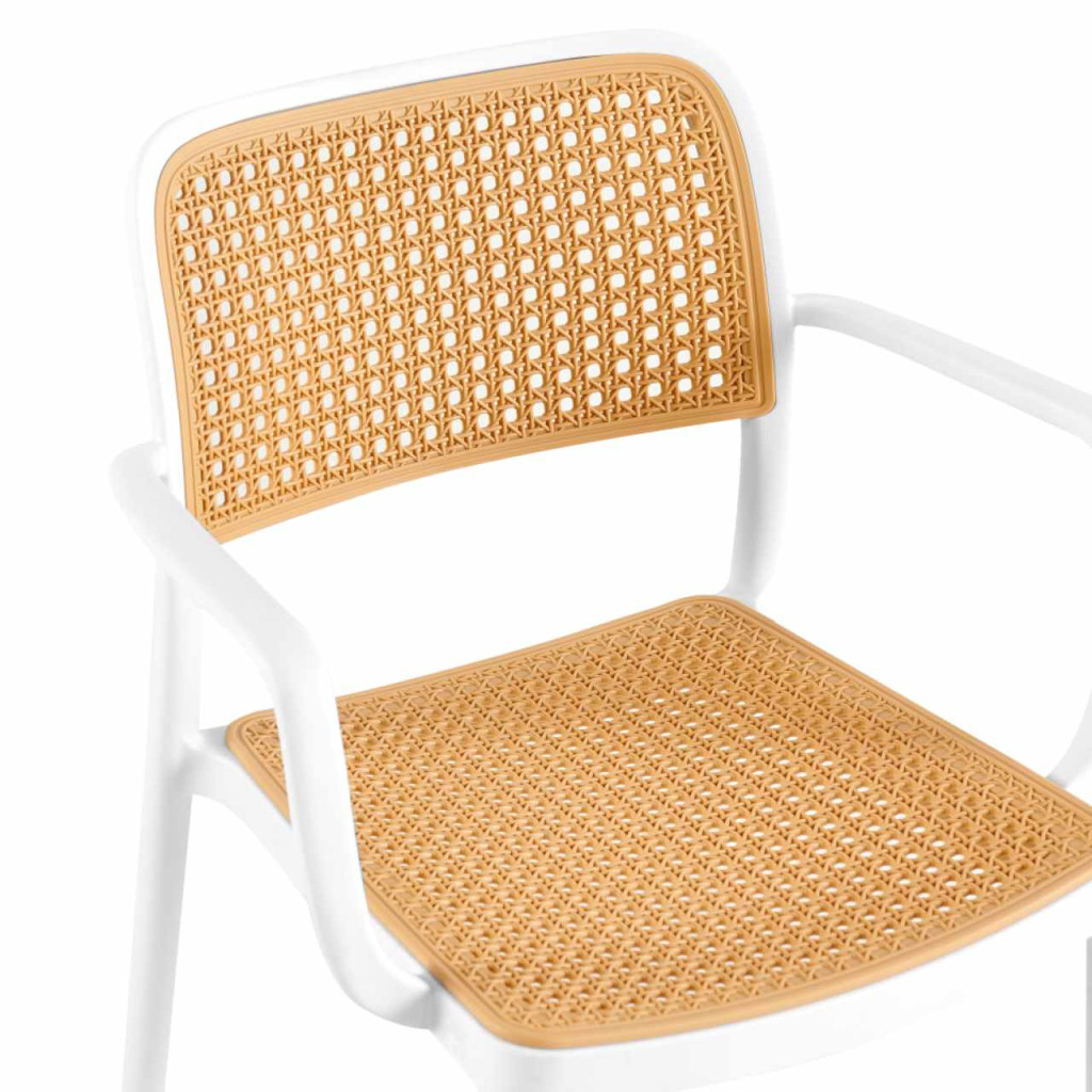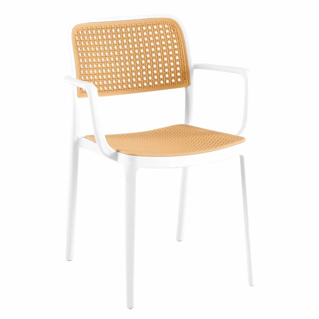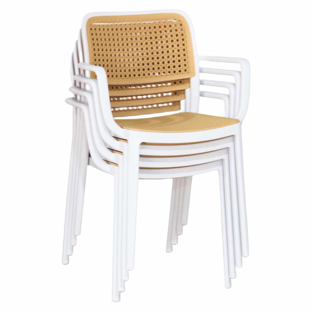 Anyag: műanyagSzín: fehér/bézsMéretek (SzxMéxMa): 58x55x81,5 cmÜlés magassága: 46 cmÜlés mélysége: 43 cmÜlés szélessége: 43 cmHáttámla magassága: 39 cmHáttámla szélessége: 43 cmTeherbírás: 100 kgSúly: 5,25kgRakásolhatóAlkalmas kültérre és beltérre egyarántEgészben szállítva
