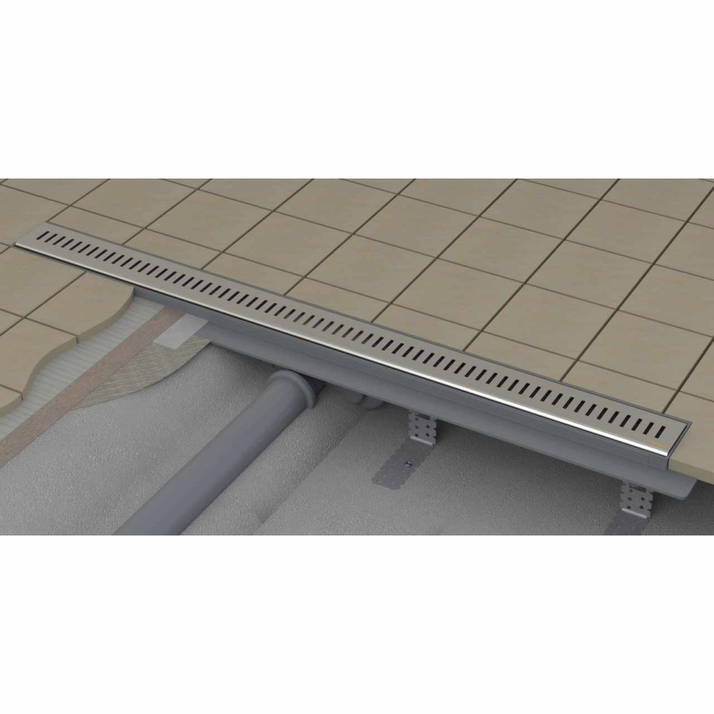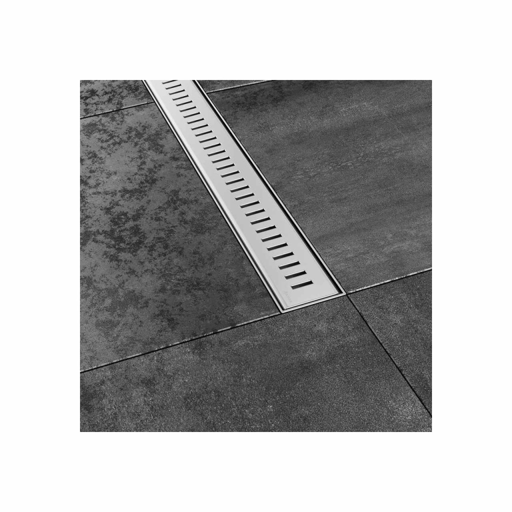 Zebra műanyag zuhanyfolyóka, minőségi rozsdamentes acél ráccsal. Telepítés a helyiségbe. Fényes kivitelben. Alacsony építési magasság.