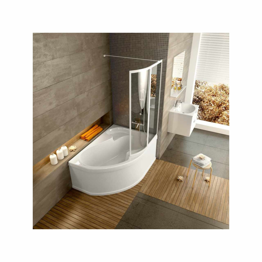 Két részből álló, mozgatható fürdőkád zuhanykabin a Rosa II 170 fürdőkádhoz. Fehér kivitelben, átláthatatlan műanyag betéttel, Rain dekorációval. Bal változat.