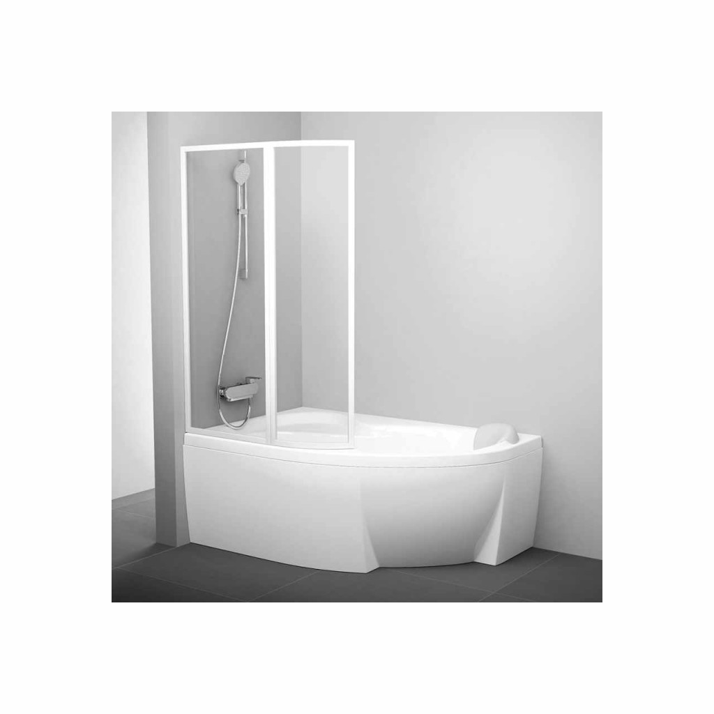 Kétrészes, mozgatható kádparaván a Rosa II 170 kádhoz. Fehér színben és tiszta üvegbetéttel, Ravak AntiCalc® védőréteggel. Bal oldali változat.