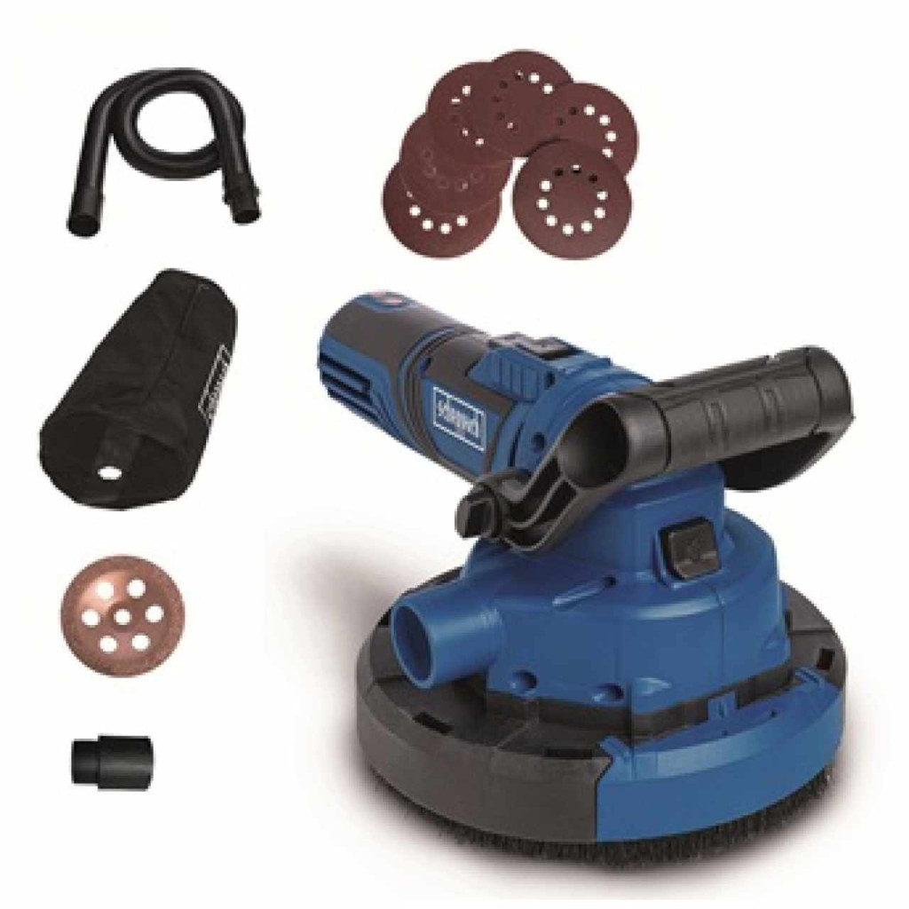 A Scheppach BFR 1200 csiszoló nem csupán egy átlagos gipszkartonszerszám. A zúzott keményfém csiszolókorong használatát lehetővé tevő kialakításának köszönhetően a használata nagyon kemény felületeken is elvégezhető. Könnyedén eltávolítja a vakolatot, kiegyenlíti a betont, eltávolítja a ragasztó- és festékmaradványokat, vagy akár a fa kérgét is. A korong alkalmas felületek durva csiszolására és formázására, átmenetek kiegyenlítésére, illetve olyan anyagok megmunkálására, mint a homokkő, a mészhomokkő vagy a pórusbeton. A standard tartozékok ezután gipszkarton vagy polisztirol lapok csiszolására, valamint felületek előkészítésére használhatók festés vagy polírozás előtt. A gépet egy erőteljes, 1050 W-os, állítható fordulatszámú motor hajtja. A munka kényelmét és pontosságát az ergonomikus, állítható fogantyú, a sarkokban és falak közelében történő csiszoláshoz használható levehető előlap, valamint a beépített porelszívás biztosítja, porzsák vagy külső eszköz csatlakoztatásának lehetőségével. A csomag tartalma: flexibilis tömlő (1-3,5 m) 25 literes porzsák adapter külső elszívóhoz szerelőkulcs hat csiszolópapír keményfém csiszolókorong. Műszaki adatok: Motor: 230 V/50 Hz Teljesítményfelvétel: 1050 W Fordulatszám: 410 – 1900 fordulat/perc Kerek csiszolótalp: O 180 mm Elszívó csatlakozó O: 40 mm Gép méretei: 370 x 210 x 170 mm Rendelési szám: 5903825901 EAN: 4046664249337 Súly: 4 kg