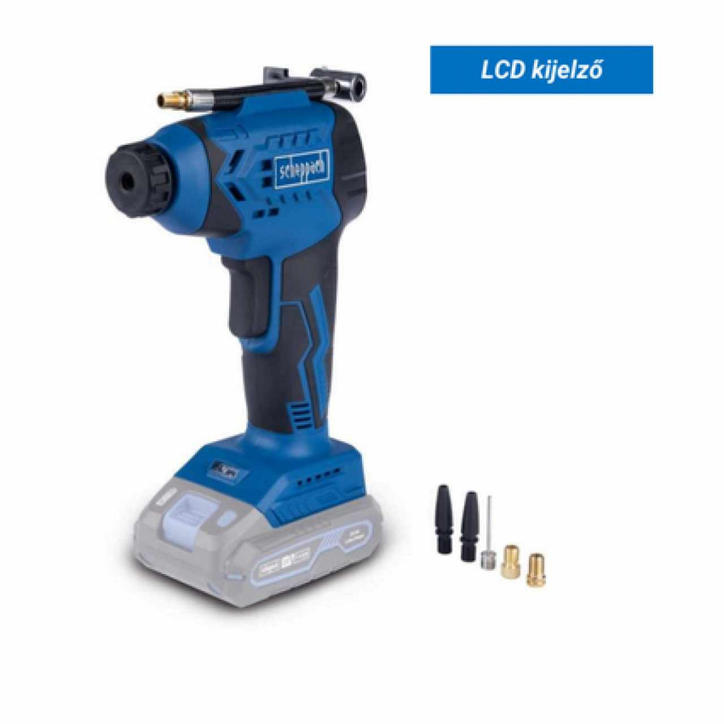 kompresszor a Scheppach IXES 20V termékcsalád része, így kombinálható a sorozat összes akkumulátorával és