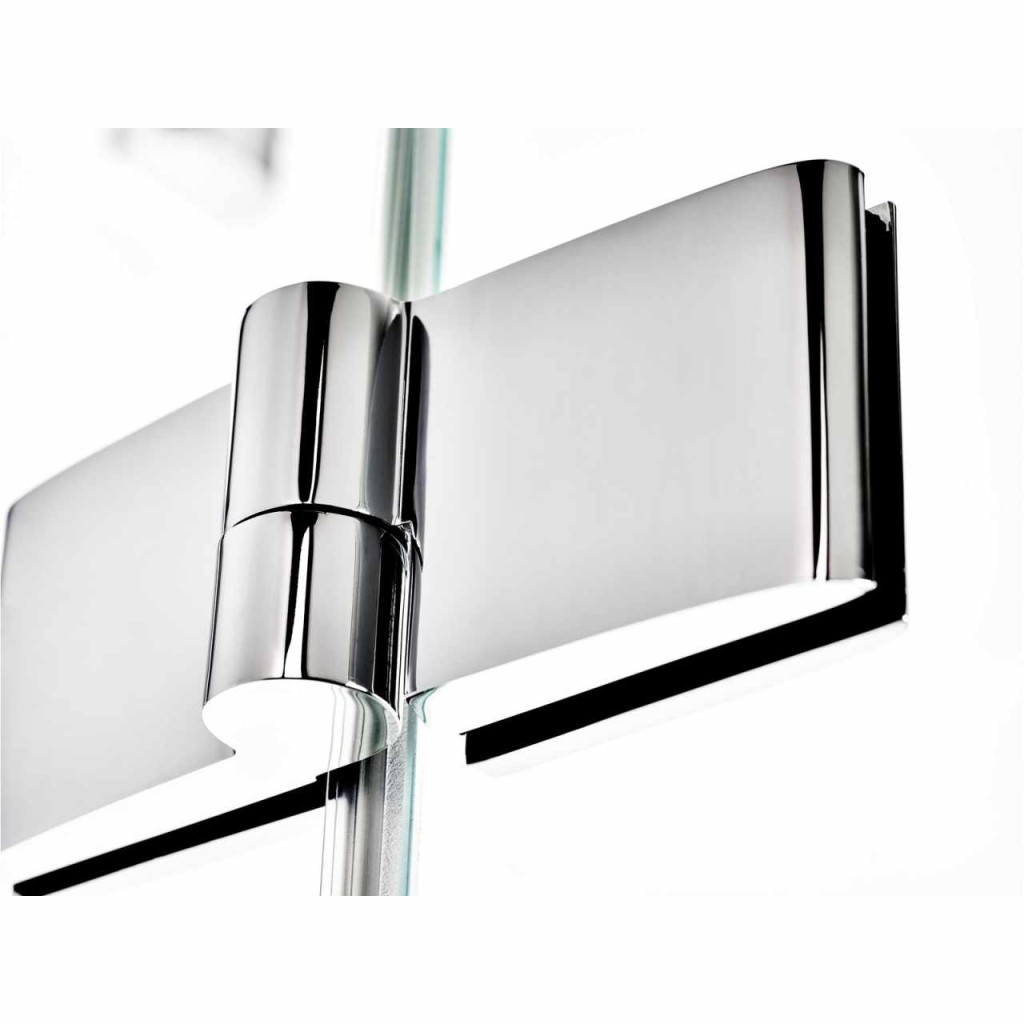 SmartLine négyrészes sarokzuhanykabin fényes króm kivitelben, átlátszó biztonsági üveggel és Ravak AntiCalc® védőbevonattal. Zsanéros nyíló rendszer.