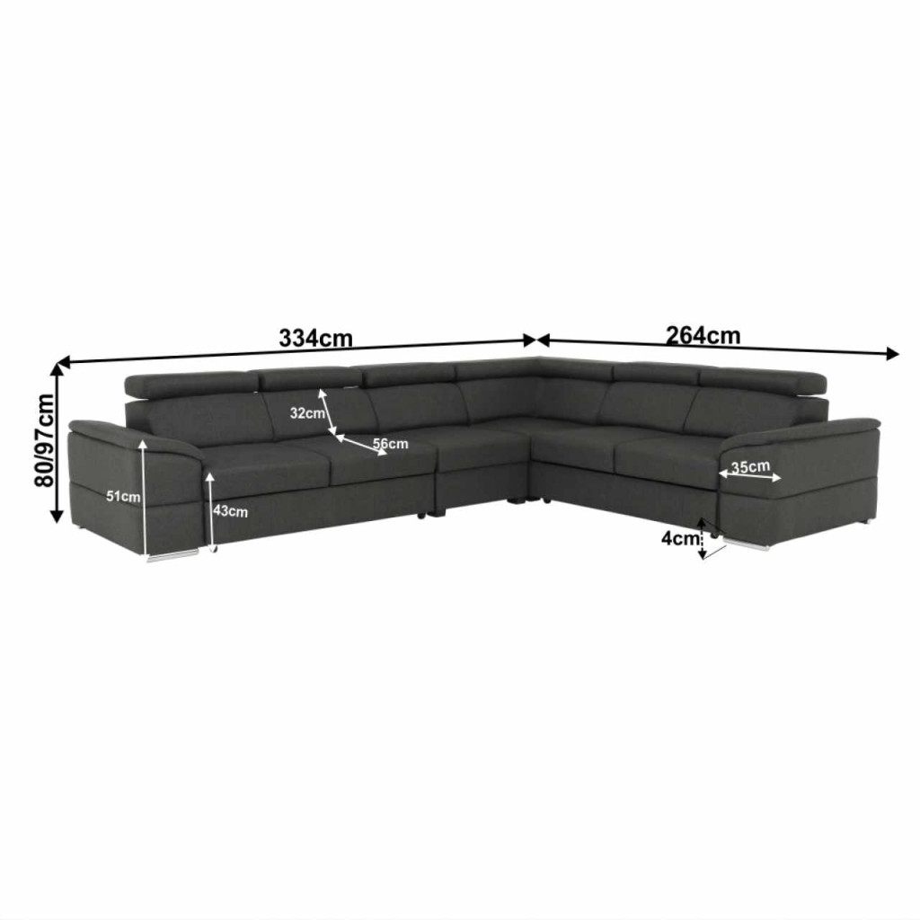Anyag: anyag savana 05A szövet kopásállósága: 80 000 MartindaleSzín: szürkeMéretek (SzéxMéxMa): 334x264x80 cmÜlés magasság emelt támlákkal: 95 cmKinyithatóAlvófelület(SzéxHo): 183x125 cmÜlőmagasság: 43 cmÜlőmélység: 56 cmA kartámasz méretei SzéxMa: 35x51 cmA háttámla magassága: 30 cmFejtámla magassága: 27 cmLábak magassága: 4 cmTeljesen kárpitozottUniverzálisTárolóhellyel5 pozícionálható fejtámla6 fokozatban állítható fejtámlákRugós töltet az ülő részenSzétszerelt állapotban szállítvaVálaszthat a Savana vagy Aria szövet hat színváltozatából. Választását jelölje meg közvetlenül a megrendelőlapon. Ar: 731 900 Ft. Szállítási idő 6-8 hét.