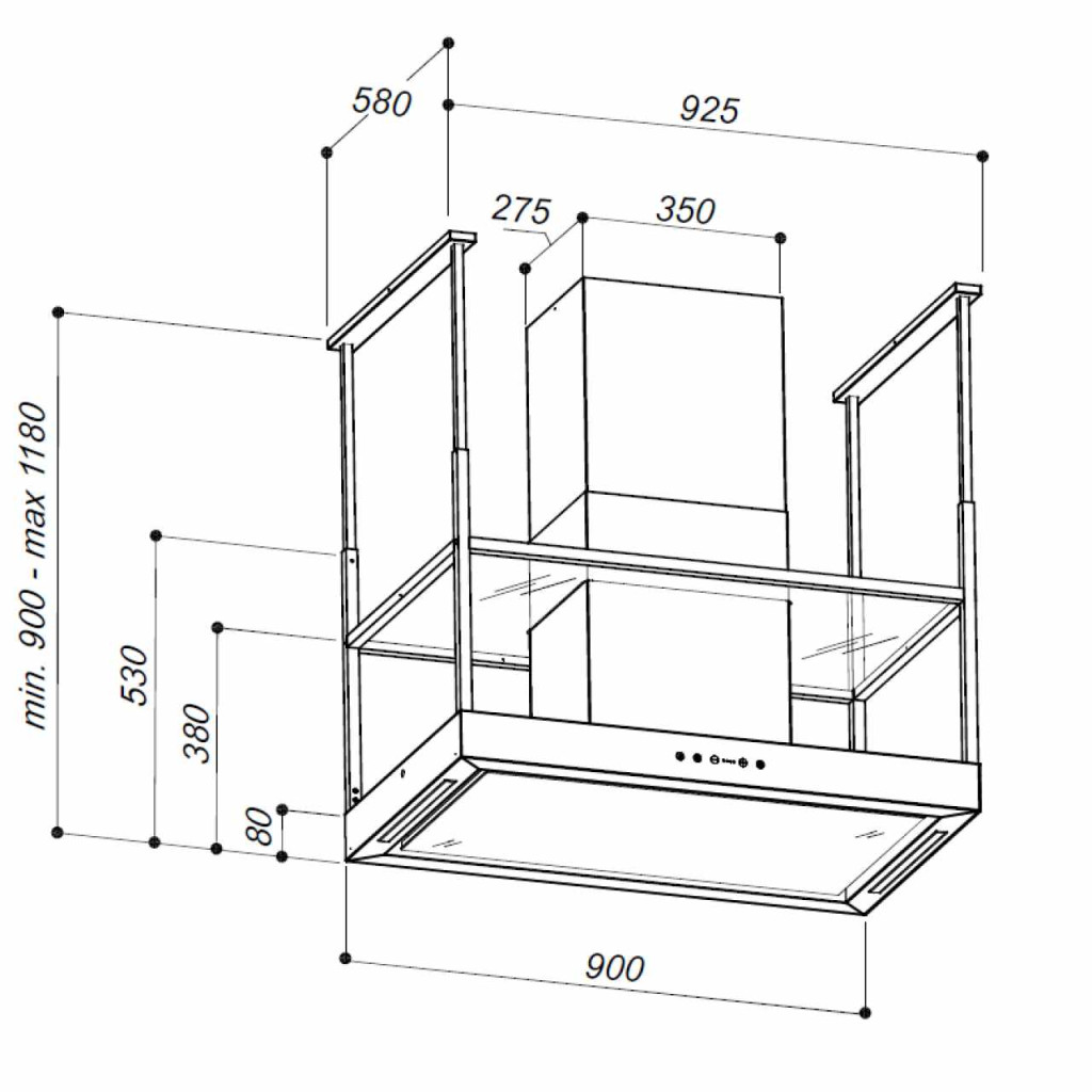 • Megjegyzés: Aszimmetrikus elszívás. Az elszívó azon oldalán, ahol a motor és a kürtő helyezkedik el intenzívebb az elszívás, mint a készülék motortól távolabbi részén.