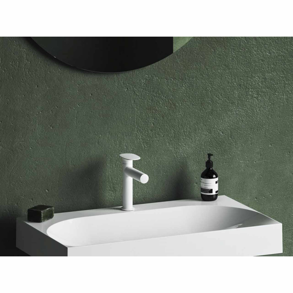 Spring álló mosdócsaptelep leeresztő nélkül. Matt fehér kivitelben. Rejtett perlátor EcoFlow funkcióval.