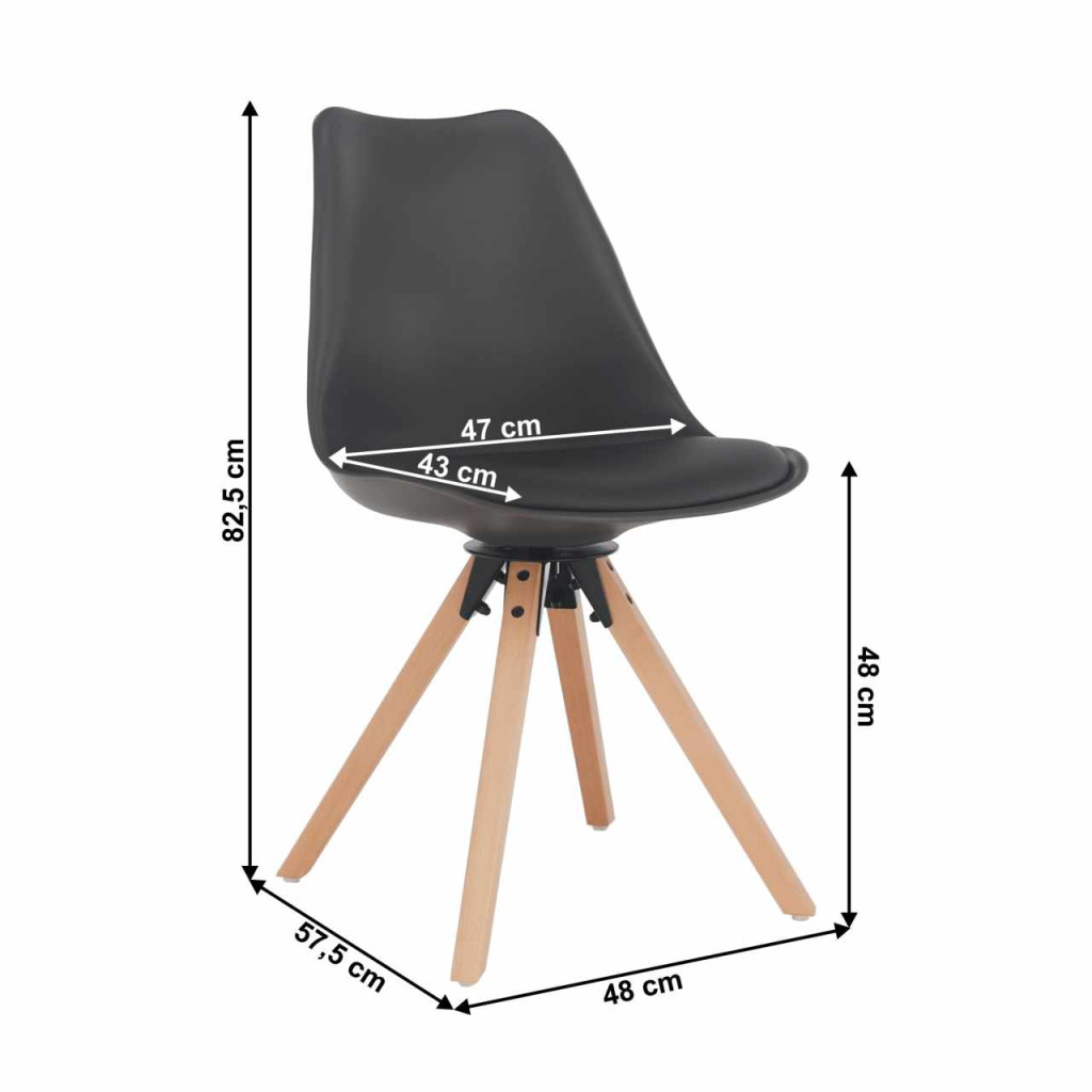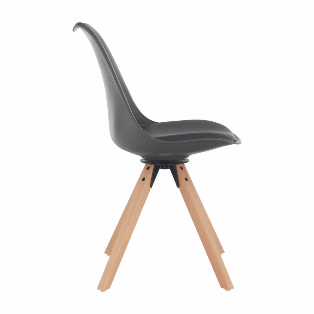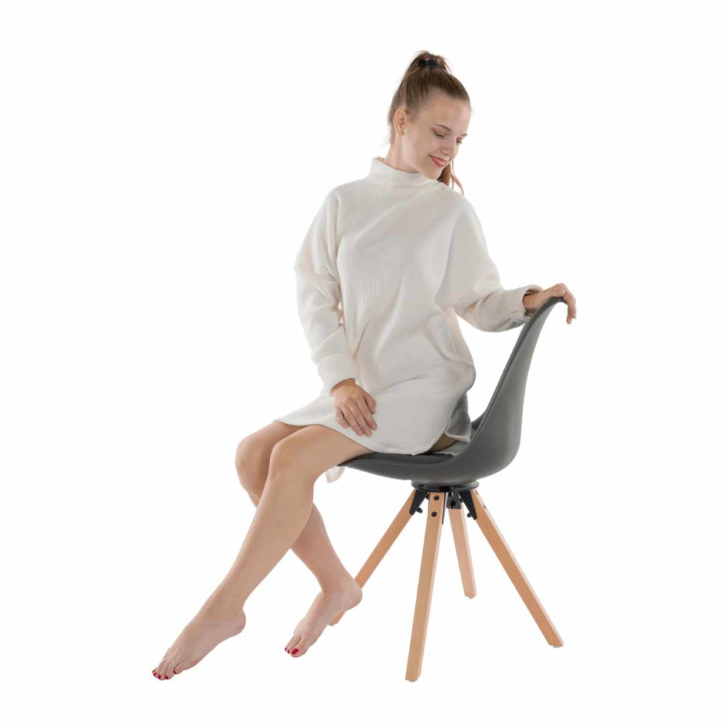 Ülés kárpitozásának anyaga: ekobőr Szín: sötétszürke Szerkezet anyaga: műanyag Szín: sötétszürke Láb anyaga: fa Szín: bükkfa Szövet kopásállósága a Martindale-teszt szerint: 100 000 ciklus Méretek (SzxMéxMa): 48x57,5x82,5 cm Ülés szélessége: 47cm Ülés mélysége: 43 cm Ülés magassága: 48 cm Teherbírás: 100 kg Forgó Akár 360° fokban Bontásban szállítva