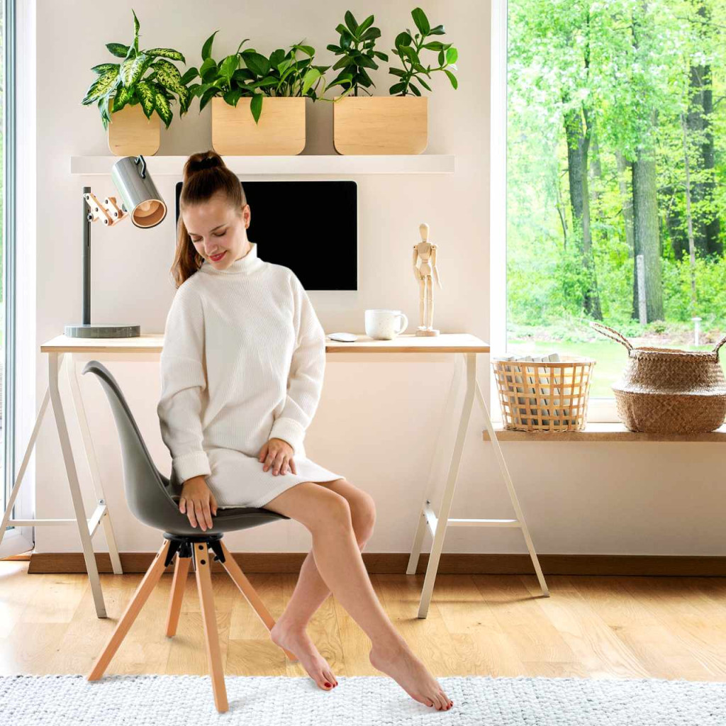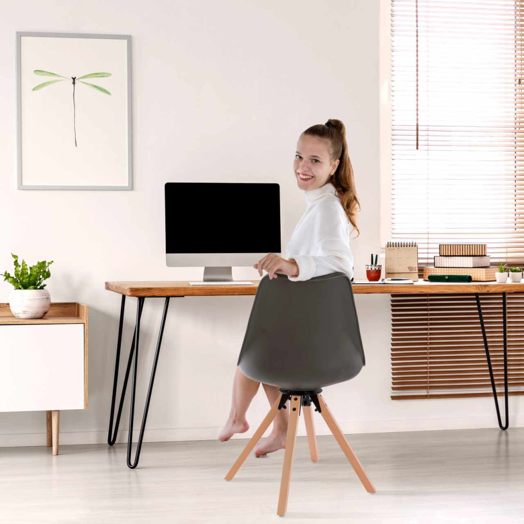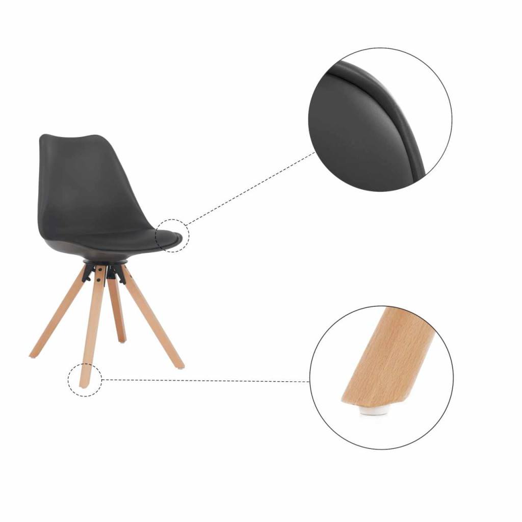 Ülés kárpitozásának anyaga: ekobőr Szín: sötétszürke Szerkezet anyaga: műanyag Szín: sötétszürke Láb anyaga: fa Szín: bükkfa Szövet kopásállósága a Martindale-teszt szerint: 100 000 ciklus Méretek (SzxMéxMa): 48x57,5x82,5 cm Ülés szélessége: 47cm Ülés mélysége: 43 cm Ülés magassága: 48 cm Teherbírás: 100 kg Forgó Akár 360° fokban Bontásban szállítva