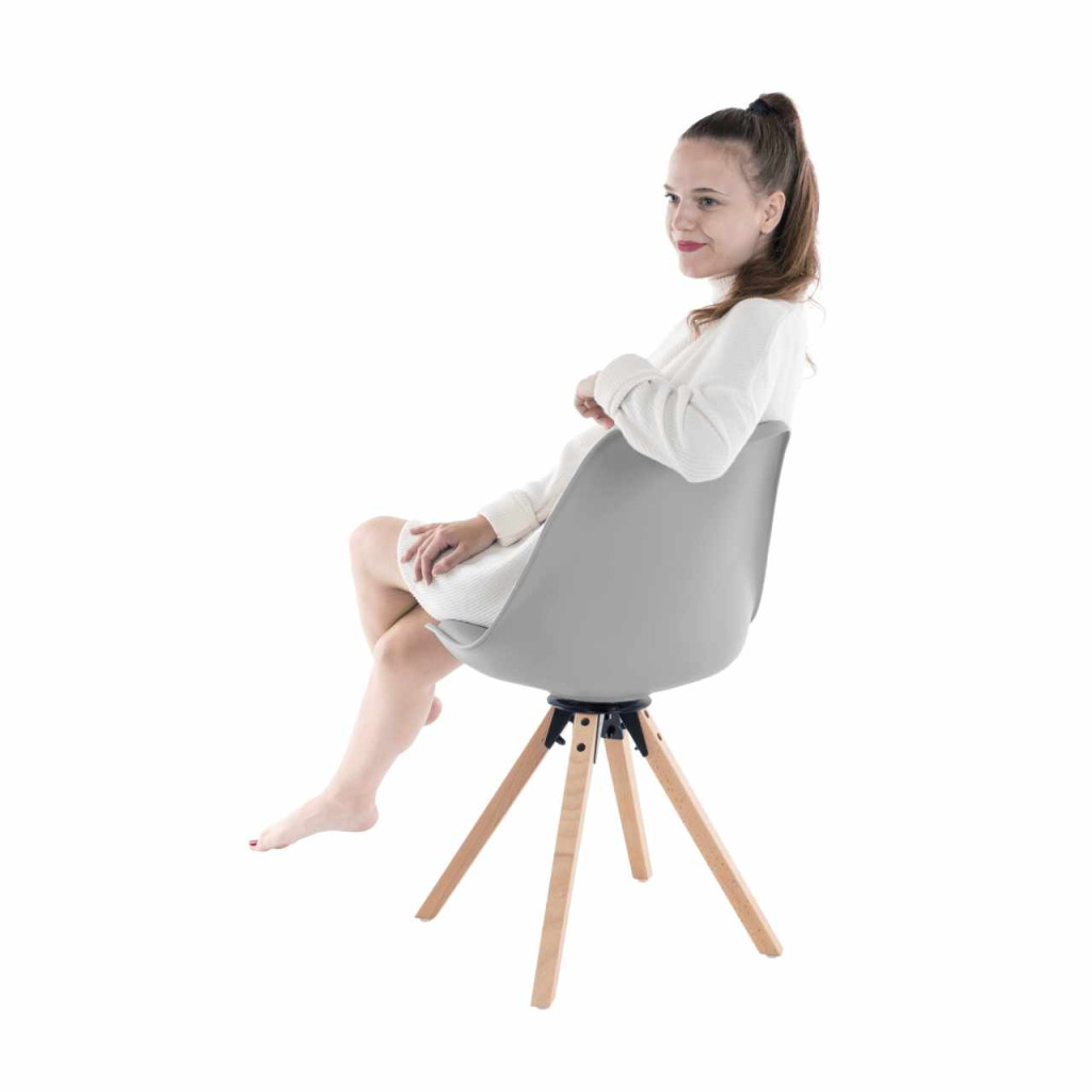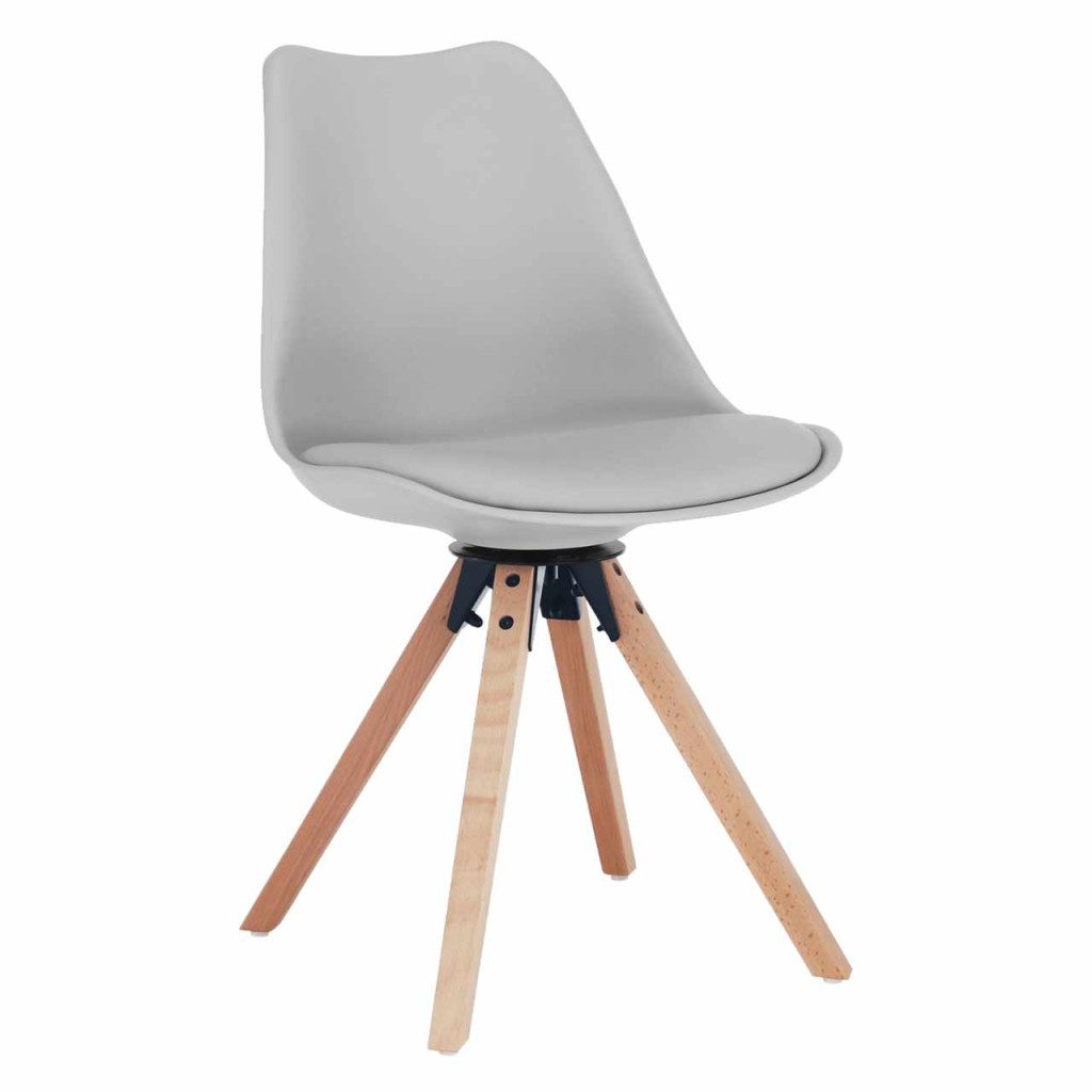 Ülés kárpitozásának anyaga: ekobőr Szín: világosszürke Szerkezet anyaga: műanyag Szín: világosszürke Láb anyaga: fa Szín: bükkfa Szövet kopásállósága a Martindale-teszt szerint: 100 000 ciklus Méretek (SzxMéxMa): 48x57,5x82,5 cm Ülés szélessége: 47cm Ülés mélysége: 43 cm Ülés magassága: 48 cm Teherbírás: 100 kg Forgó Akár 360° fokban Bontásban szállítva