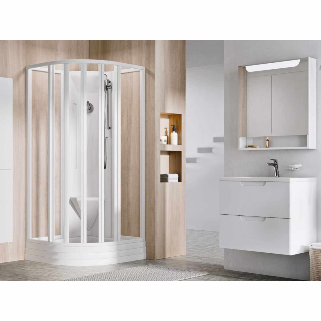 A termék két merev egyenes részből és négy hajlított részből áll, amelyek tolóajtót képeznek. A doboz tartalmazza a Ronda zuhanytálcát, a zuhanycsapot, a zuhanyfejet és a zuhanytömlőt. A tartozékokat nem lehet választhatóan cserélni. A zuhanykabin bontatlan állapotban kerül szállításra.