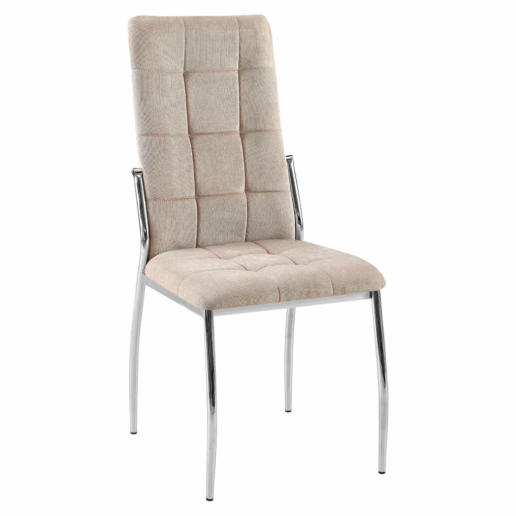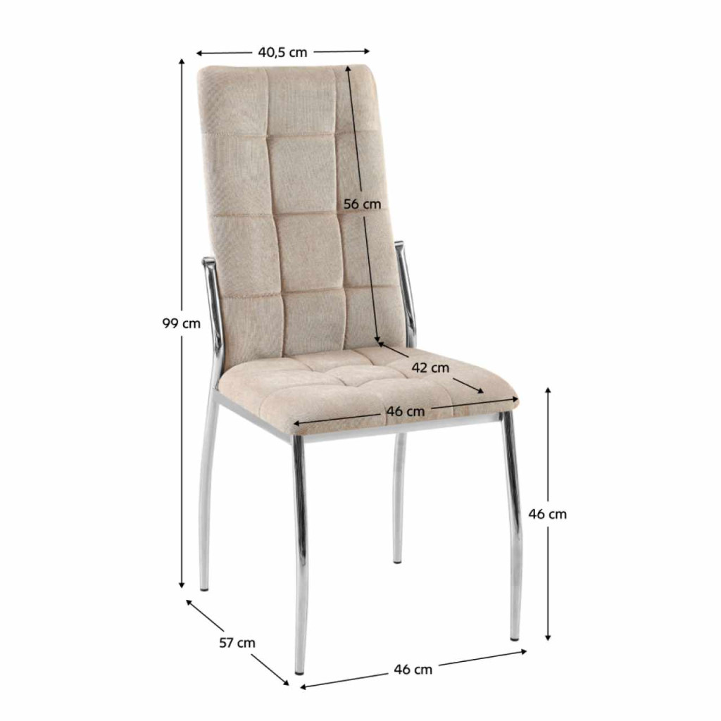Kárpit anyaga: szövetA szövet kopásállósága a Martindale teszt szerint: 50 000 ciklusSzín: barnaLábak anyaga: fémSzín: krómMéretek (SzxMéxMa): 46x56x99 cmÜlés magassága: 47 cmÜlés mélysége: 42 cmÜlés szélessége: 46 cmHáttámla magassága: 56 cmHáttámla szélessége: 36 cmMaximális teherbírás: 100 kgSteppeltIdeális az étkezőbeSzétszerelve szállítva