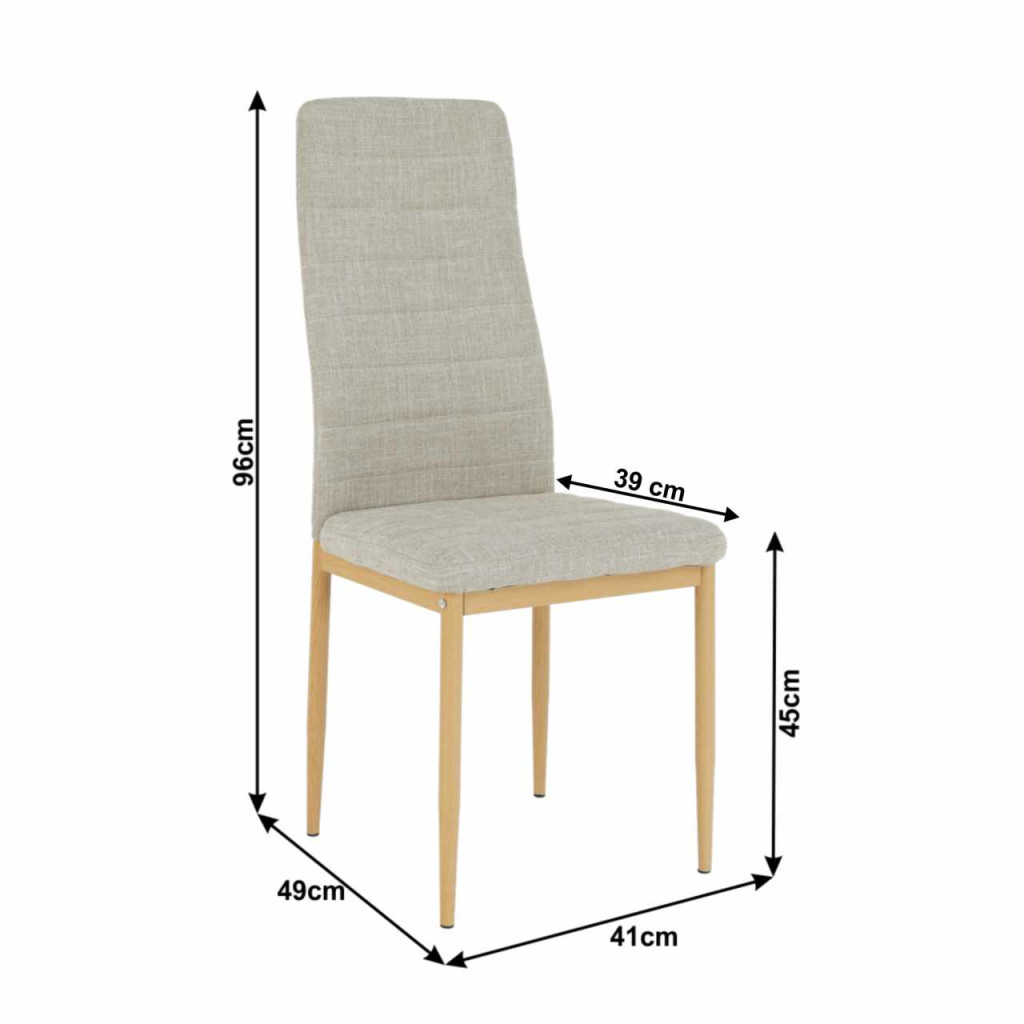 Étkezőszék COLETA NOVA Anyag: szövet/ fém A szövet kopásállósága: 50 000 MartindaleSzín: bézs/ bükk Mérete (SzéxMéxMa): 41x49x96 cm Ülésmagasság: 45 cm Ülés mélysége: 39 cmTerhelhetőség: 90 kg Lapraszerelten szállítva
