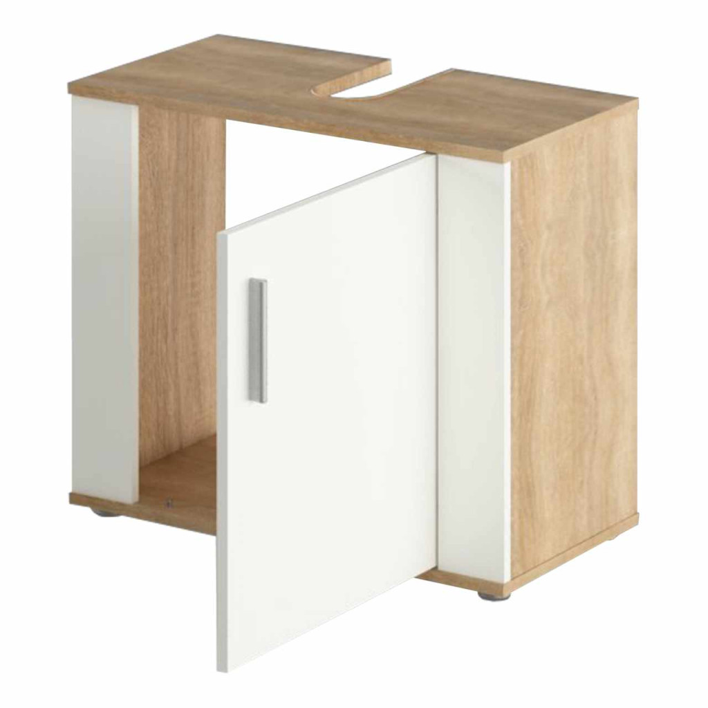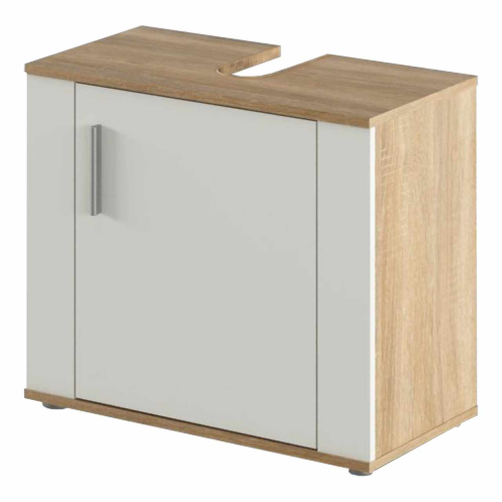 Szekrény mosogató alá, sonoma tölgy/matt fehér, LESSY NEW 02 , Fehér , Faforgács