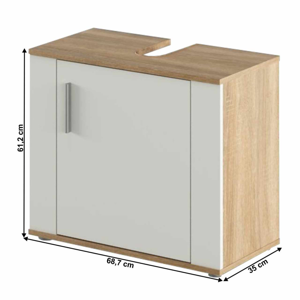 Anyag: laminált DTD Szín: sonoma tölgy/matt fehér Méretek (SzxMéxMa): 68,7x35x61,2 cm Anyag vastagsága: 1,6 cm Műanyag fogantyúk Fogantyúk színe: szürke Egyajtós Felső lap kivágással a mosogató számára Mosogató nélkül Modern dizájn Szétszerelve szállítva