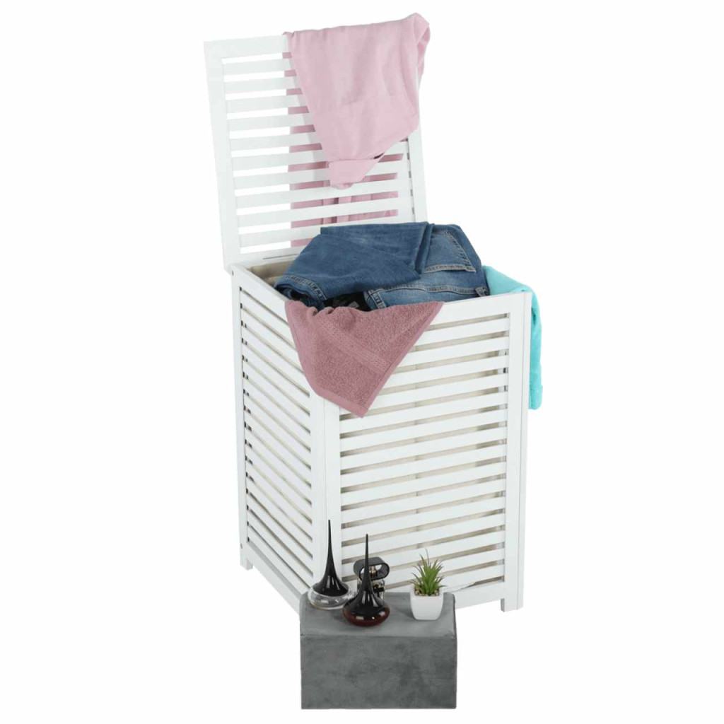Szennyestartó kosár, BASKET Anyag: festett bambusz/szövet Szín: fehér/bézs Méretek (SzéxMéxMa): 40x40x58 cm
