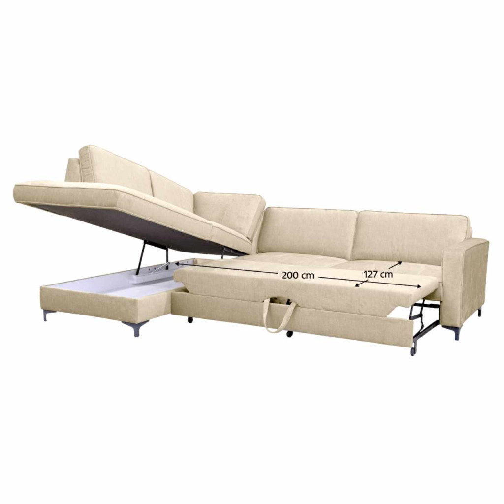Széthúzható ülőgarnitúra, krémszínű, balos, ERMON ROH