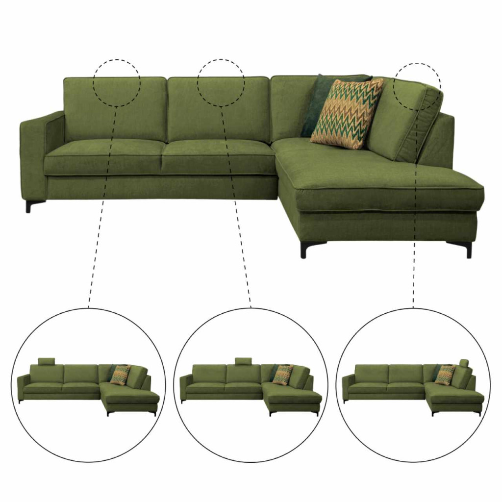 Széthúzható ülőgarnitúra, olíva zöld, jobbos, ERMON ROH