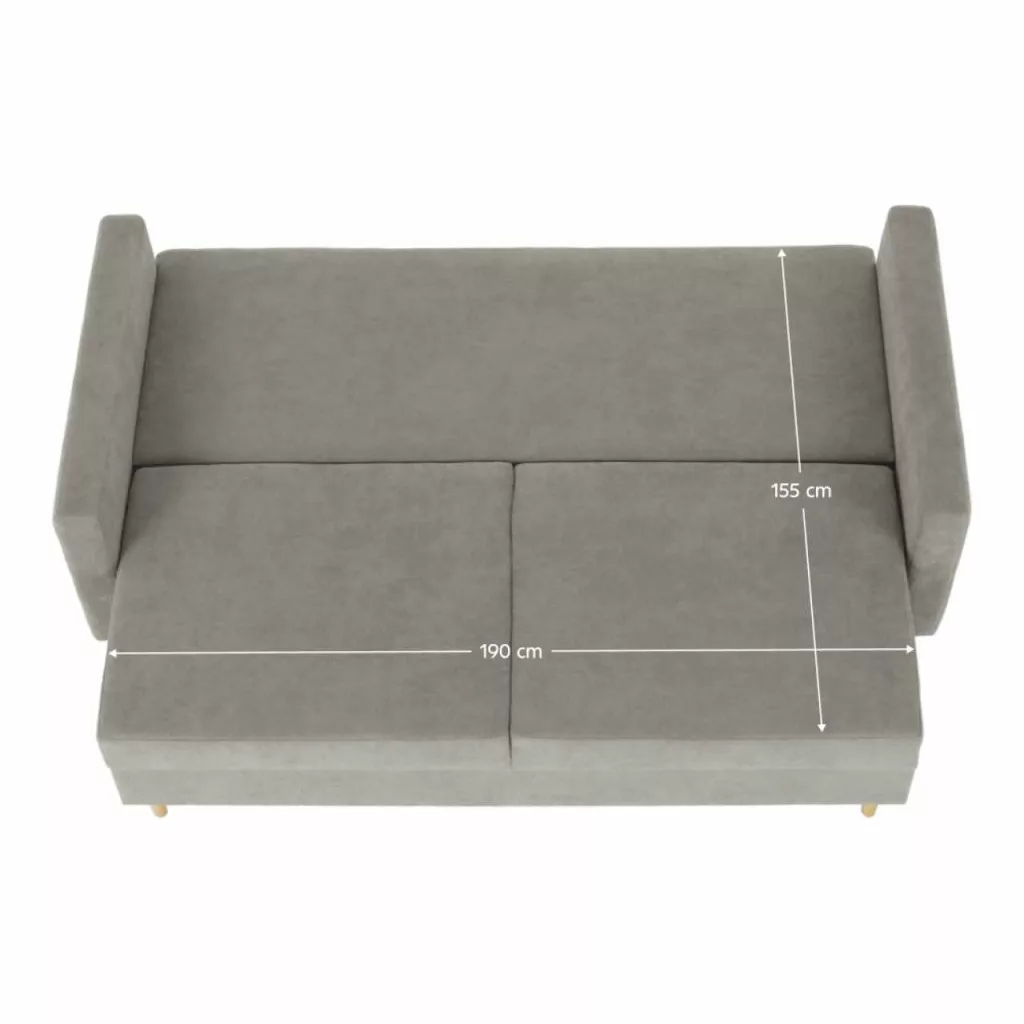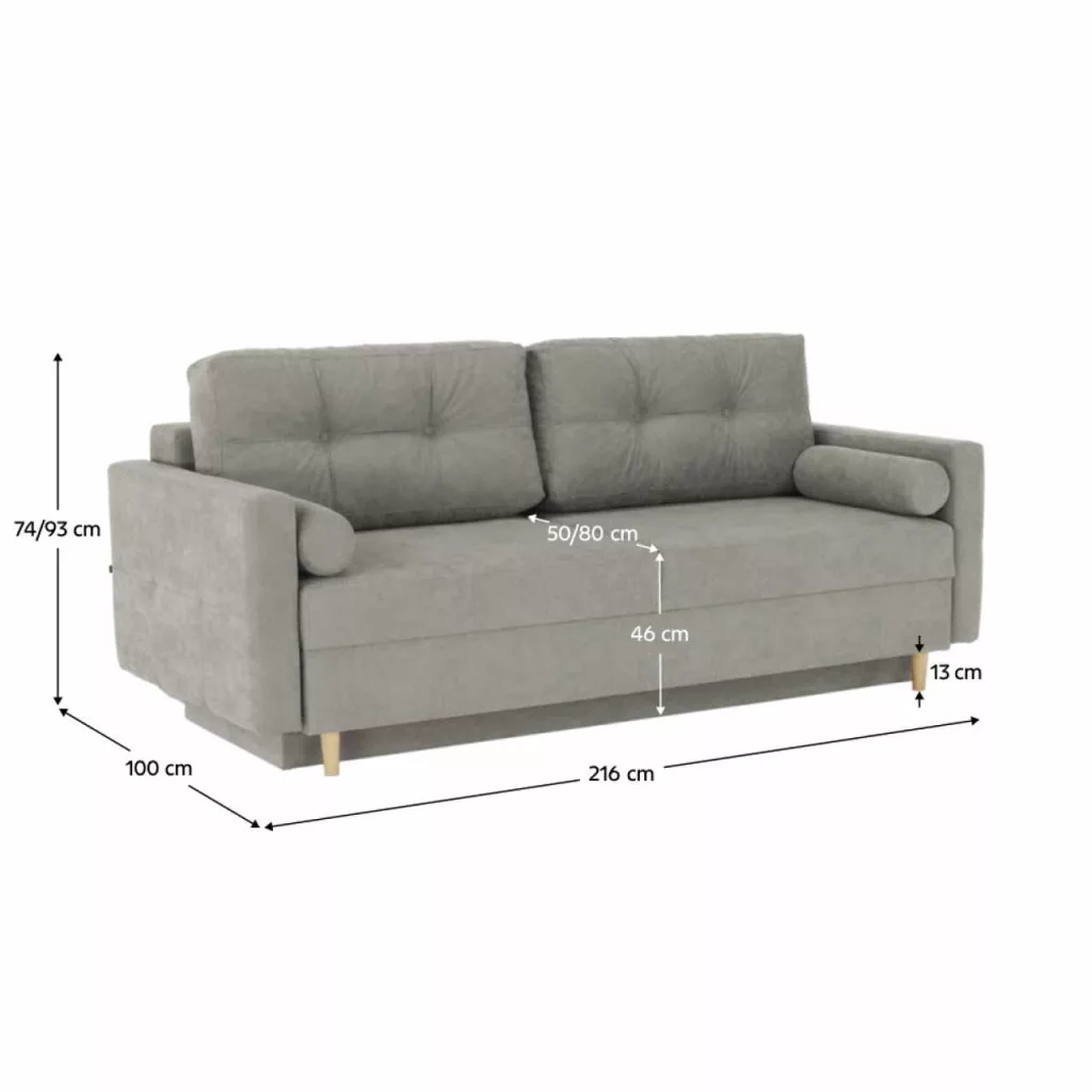 Anyag: szövet Queens 21A szövet kopásállósága: 30 000 MartindaleSzín: szürkeMéretek(SzéxMéxMa): 216x100x93 cmKinyithatóAlvóhely mérete (SzéxHo): 190x155 cmÜlésmagasság: 46cmÜlésmélység párnákkal: 50cmÜlésmélység párnák nélkül: 80 cmAz alsó tér magassága a padlótól: 13 cmA merev rész magassága hátul: 74 cmTerhelhetőség ágyanként: 90 kgEgész felületén kárpitozottBonellrugós ülésSkandináv stílusTárolásKét háttámla párnaKét dekoratív hengeres párnaMindennapi alvásra alkalmasSzétszerelt állapotban szállítva
