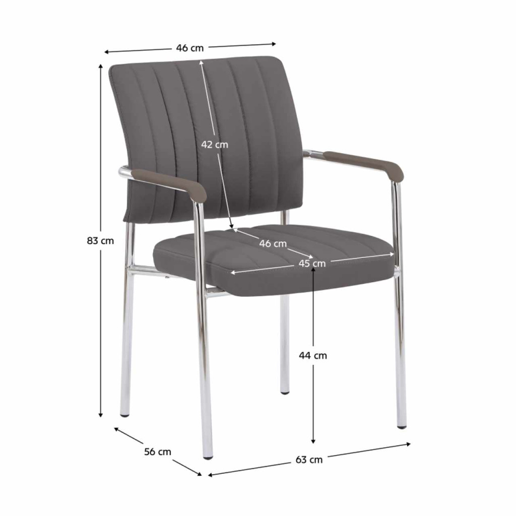 Anyag: ekobőr/fémA szövet kopásállósága a Martindale teszt szerint: 100 000 ciklusSzín: szürkésbarna Taupe/krómMéretek (SzxMéxMa): 63x56x80 cmÜlés magassága: 44 cmÜlés mélysége: 46 cmÜlés szélessége: 45 cmHáttámla szélessége: 46 cmHáttámla magassága: 42 cmTeherbírás: 100 kgKróm alapTárgyalóKartámlákkalEgészben szállítva