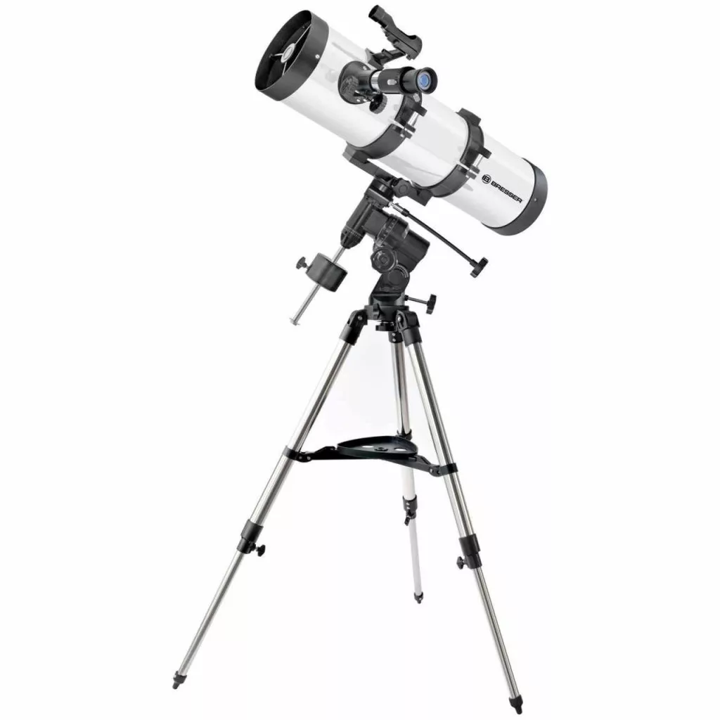 Bresser 130/650 EQ3 teleszkóp fő tükrének rekesznyílása 130 mm, fókusztávolsága pedig 650 mm. A teleszkóp kitűnő választás kezdőknek és haladó felhasználóknak, akik szeretik megfigyelni az éjszakai eget és annak lenyűgöző égitestjeit. A teleszkóphoz teljes készlet jár - állvány, háromlábú állvány, optikai tubus szerkezet és tartozékok.