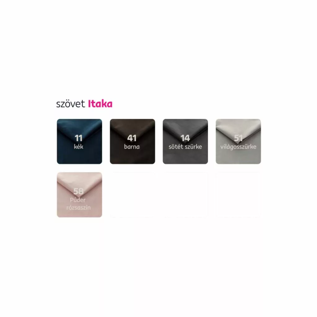 Anyag: szövet A szövet kopásállósága a Martindale teszt szerint: 100 000 ciklus Szín: 10 smaragd Ülés magja: rugós falista/pur hab Méretek (SzxMéxMa): 178x78x85 cm Ülés magassága: 46 cm Ülés mélysége: 48 cm Teljesen kárpitozott lábakon Az alsó tér magassága a padlótól: 10 cm A háttámla levehető Minőségi vízálló huzat Bontásban szállítva Lehétőség az Itaka szövet 5 színváltozatban megrendelés, ár: fotel 103 900 Ft, 2 személyes - 146 500 Ft és 3 személyes - 188 900 Ft. Egyedi megrendelés esetén az adott összeg 20%-át előre ki kell fizetni. Az előleg kifizetése után a megrendelését gyártásra bocsátjuk. Szállítási idő 6-8 hét.
