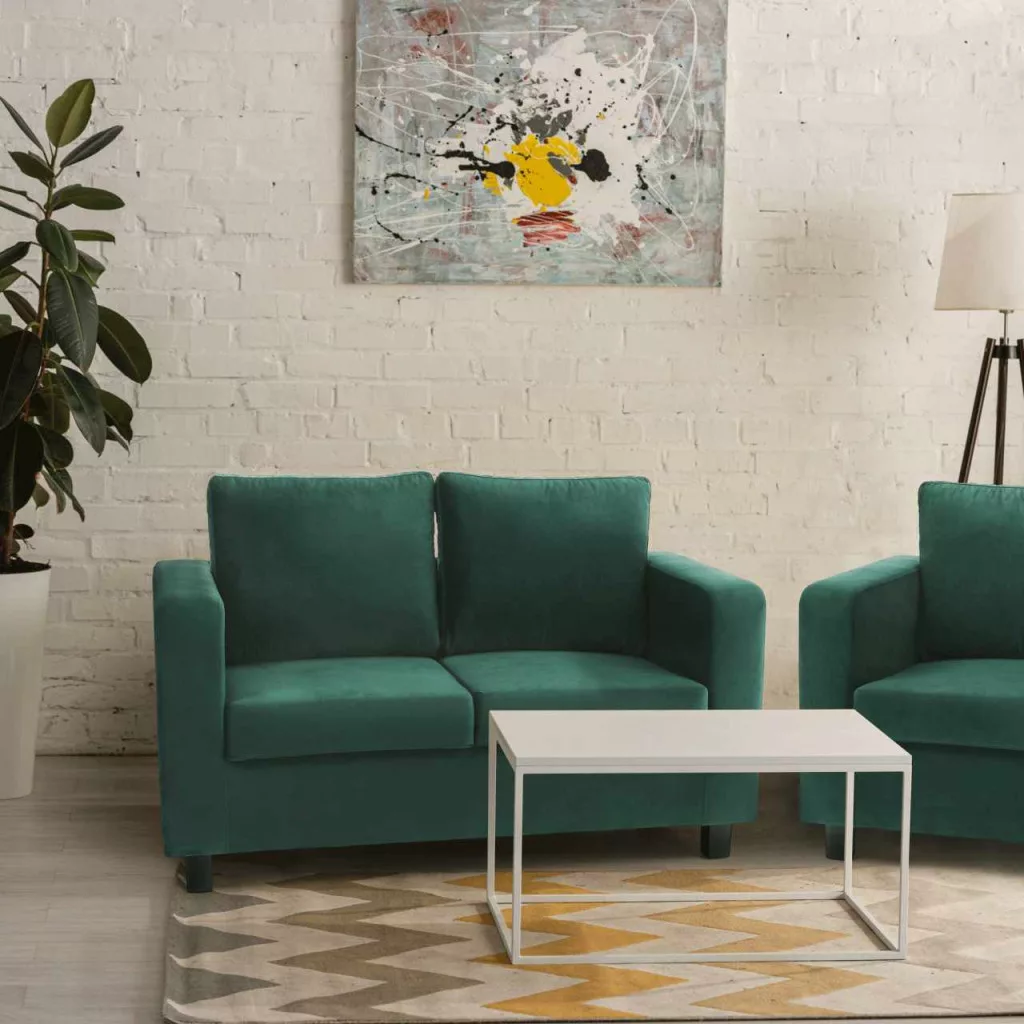Teljesen kárpitozott heverő, 3-as ülés, smaragd szövet, LUANA