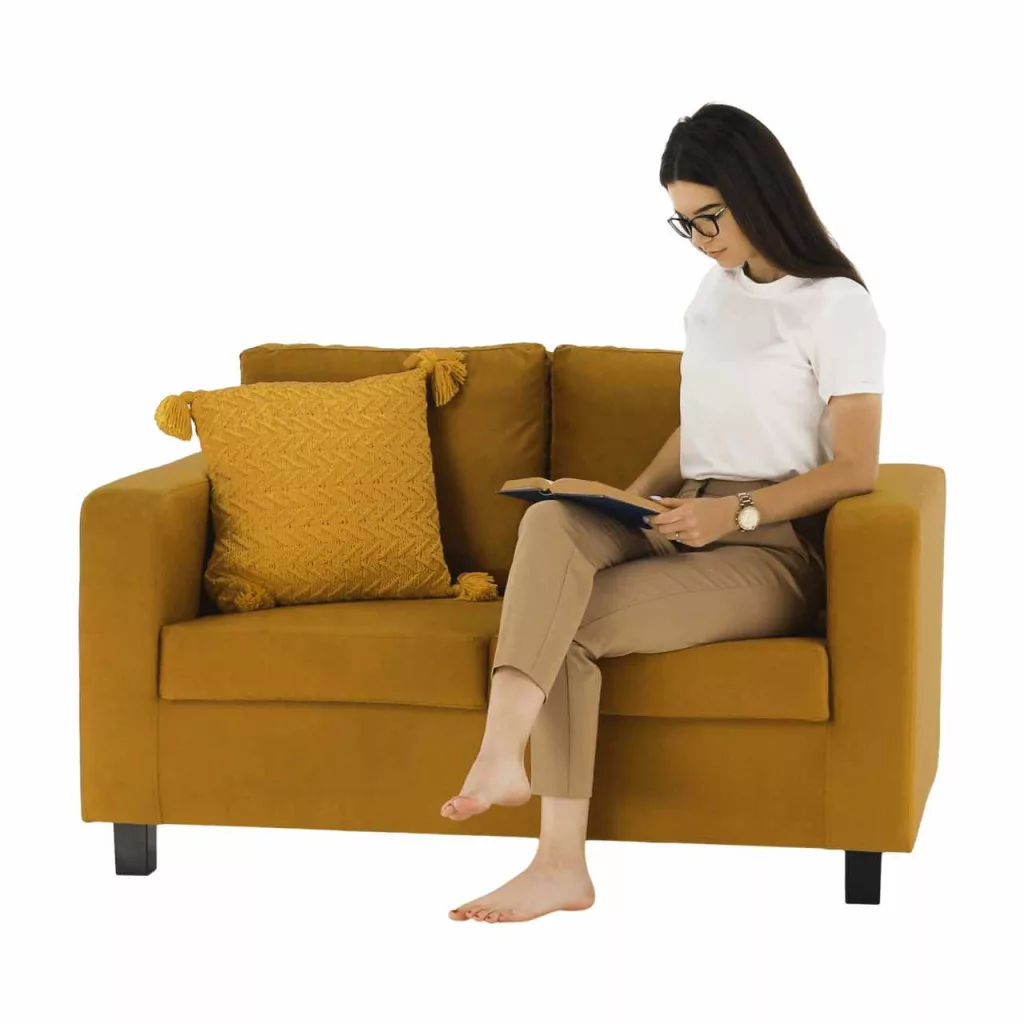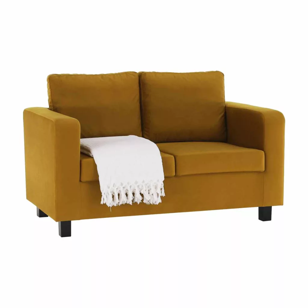 Teljesen kárpitozott heverő, mustár színű szövet, LUANA