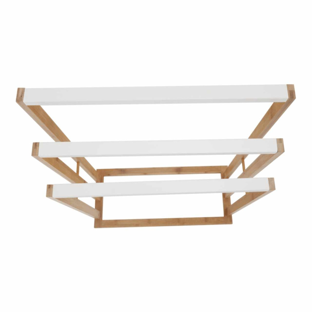 Törülközőtartó, KOMO NEW Anyag: maszív fa/lakkozott bambusz Kivitelezés: fehér/natúr Méretek (SzéxMéxMa): 54x24x82 cm Anyag vastagság: 18 mm Szétszerelve szállítva
