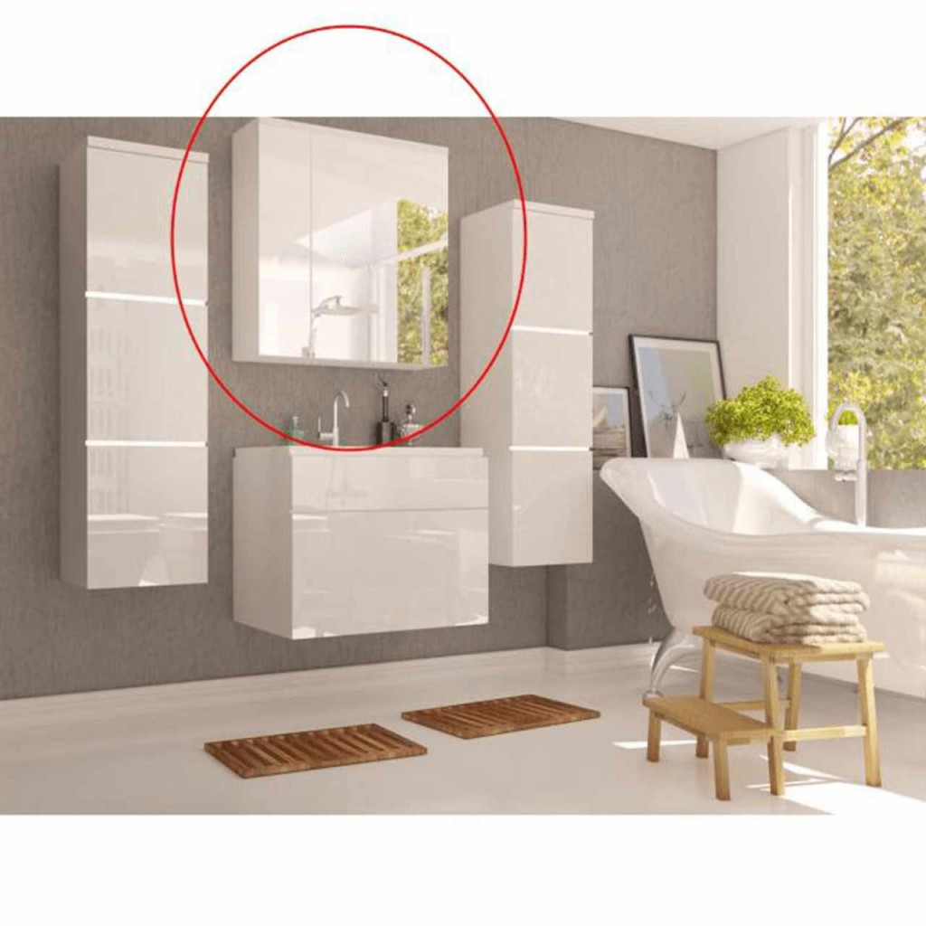 Tükrösszekrény, fehér/ fehér extra magas HG fény, MASON WH14
